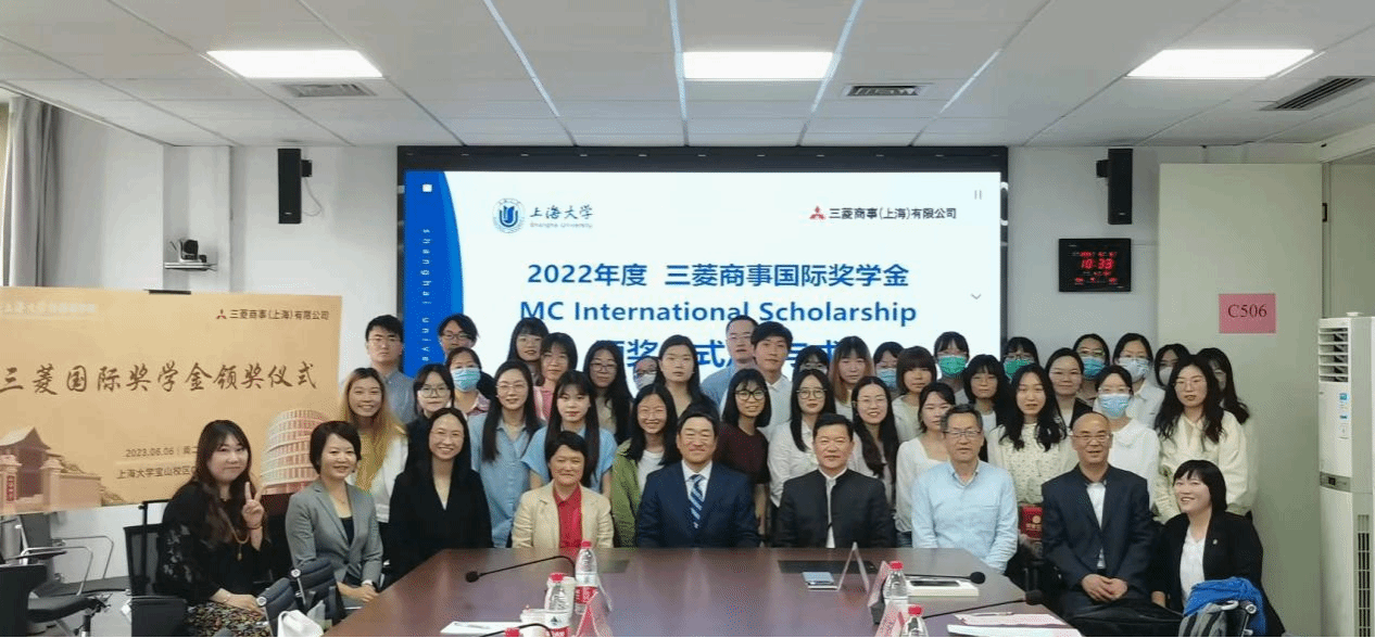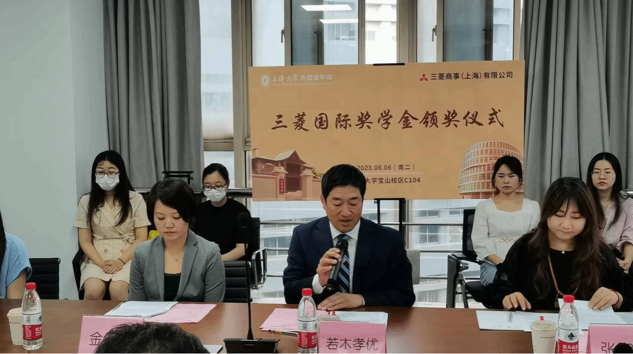 6月6日,澳门正规电子游戏平台2022年度“三菱商事国际奖学金”颁奖仪式于宝山校区C506举行,三菱商事(上海)有限公司董事长、总经理若木孝优,总务部长金健平,总务部经理张陶然,澳门正规电子游戏平台党委书记吴蔚,党委副书记、院长尚新,党委副书记、副院长贾小琴,日语系主任赵莹波,日语系代表教师廖瑞平,研究生辅导员曹若兰及本年度获奖学生出席活动,日语系教师张永娇主持。
