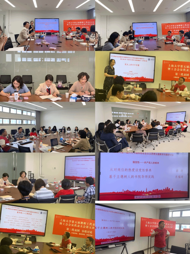 此次主题教育专题研讨会包括学思想、强党性、重实践和建新功等四个部分。第一部分学思想包括4个主题党课:支部书记于梅欣以“中国共产党人的指导思想及其话语特征演变”,从历时的视角论述了中国共产党的指导思想演变与话语特征的关系,并结合实践讨论了支部的思想建设思路;组织委员白岸杨以“增强党员凝聚力”为主题,分享了支部组织建设的工作以及思考;宣传委员金璐以“从宣传中看支部成长”为题,回顾了近年来支部在宣传工作中的成长与转变,以及新时代支部讲好中国故事的宣传建设思路;张珊珊以“党史上的对外传播”为题,回顾了中国故事对外传播的历史进程及其对现代传播的启示。第二部分强党性,以共产党人的修养为切入点,薛清老师以“从对热爱的岗位谈党性修养”为题,叙述了作为一位资深教师这么多年以来在教书育人方面的孜孜以求;肖福寿老师则以“立德树人的书院导师实践”为题,介绍了作为导师在青云书院所做的教学指导实践。第三部分重实践,以主题拼盘的形式,充分结合每位党员的个性特征,范金萍、周育和周健华三位老师结合自己的工作实践,论述了“不忘初心,牢记使命——党员的责任与使命”; 贺莉、蔡春红和黄红三位老师则以“身体力行,发挥优势——党员的先锋模范作用”为题,回顾了在自己的岗位上如何发挥党员的先锋模范作用;徐群、沈力两位老师以“春风化雨,加持梦想——党员的无私奉献精神”叙述了通过点滴行动如何感染影响学生,给学生带来阳光;叶新、温年芳结合自己的专业背景,论述了作为新时代党员教师,如何帮助学生形成“植根中华,放眼全球”的意识,树立“四个自信”。第四部分建新功,以自由讨论的方式展开,全体党员以新时代党员的新风貌、新作为,结合教学实践,对如何建立新功展开了热烈讨论。