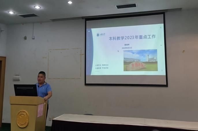 副院长戴朝晖对2023年本科教学的重点工作做了指导,提出要将总目标分步完成以及五个“进一步”指导思想,强调了学院本科教学工作要全面加强本科人才培养体系和培养能力建设,全面提高人才自主培养质量。