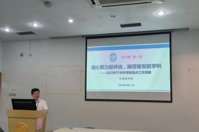首先,党委副书记、院长尚新就2023年下半年学院重点工作部署发表讲话。尚院长分析了学院各项任务目标的进展情况、梳理了下半年工作的聚焦点、综合评价了学院下半年的财务状况并对下半年重点工作进行了规划,强调要以“五五战略”为牵引,发扬“四千”精神,激励全院教职工“凝心聚力迎评估,踔厉奋发抓学科”,争取在新学年中共创佳绩。