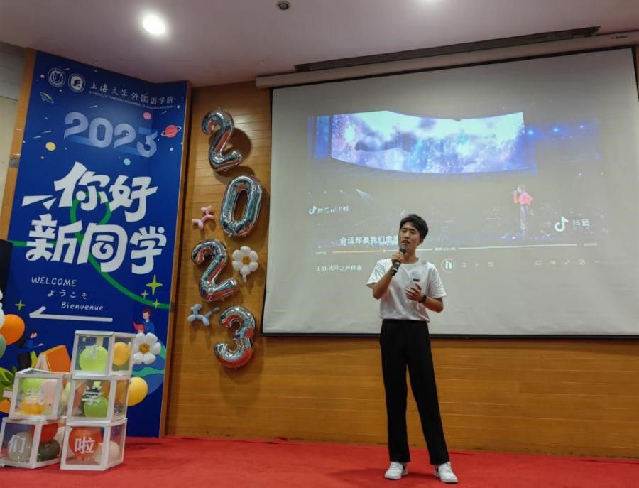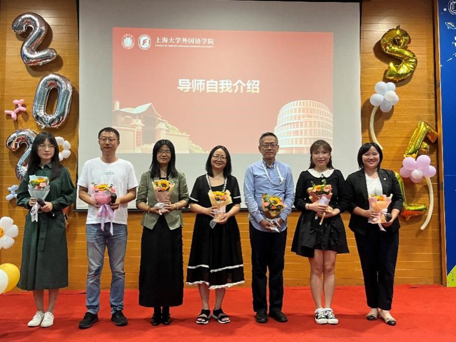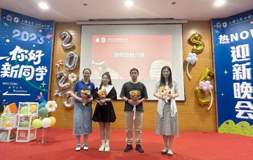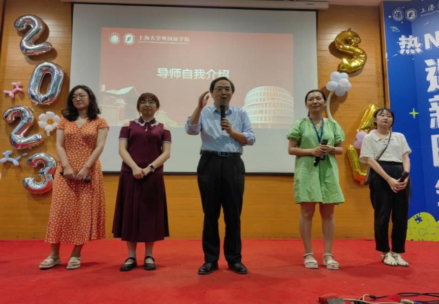 接着,英语系、日语系、法语系各位导师分别上台进行自我介绍,介绍自己的研究方向,并欢迎大家一同学习交流。研究生辅导员曹若兰老师、学硕教秘张静老师、专硕教秘姚远老师上台与大家见面,并分别介绍各自的工作内容。