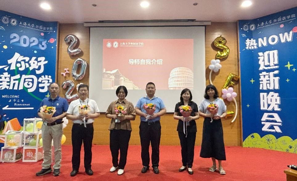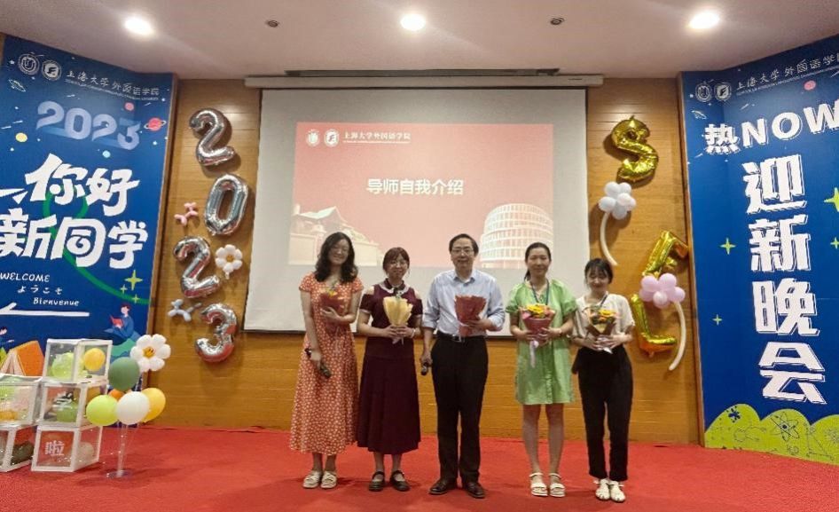 9月7日晚上6点,澳门正规电子游戏平台2023级研究生与导师见面会暨迎新晚会在嘉定校区图书馆报告厅隆重举行。澳门正规电子游戏平台党委书记吴蔚,党委副书记、院长尚新,党委副书记、副院长贾小琴,副院长戴朝晖、唐青叶、阚怀未,英语系主任张建琴,日语系主任赵莹波,法语系主任王文新与学院研究生校内外导师三十余人专程赴嘉定校区与学院2023级研究生新生们共同参加此次活动。