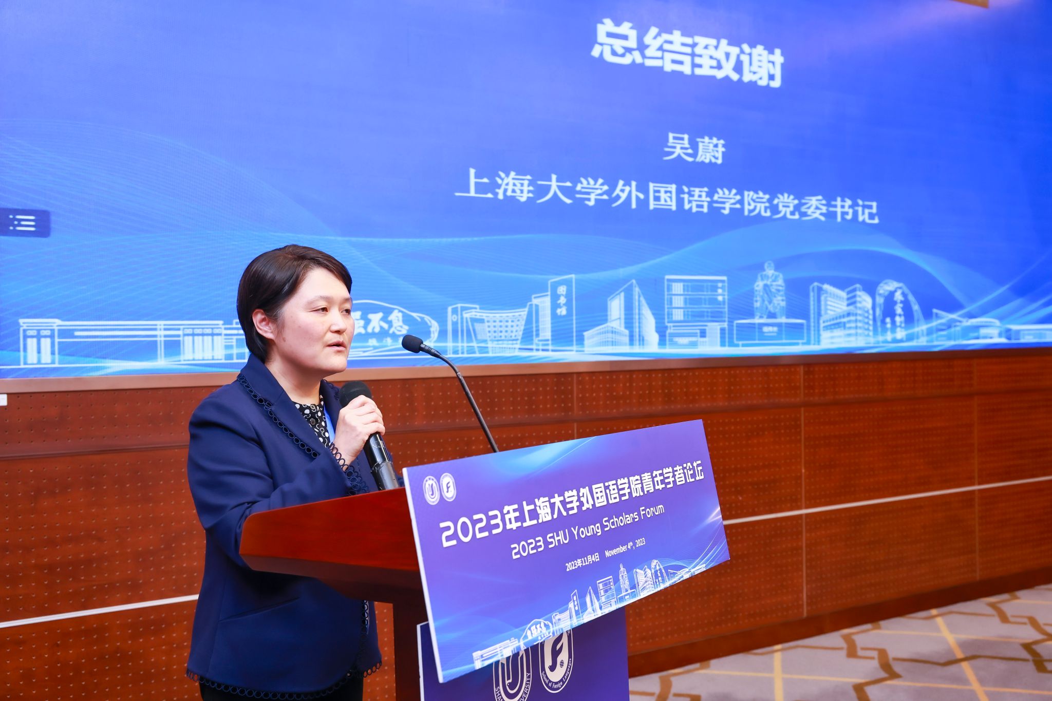 闭幕式上,尚新院长为陈雷研究员颁发了“澳门正规电子游戏平台客座教授”聘书,吴蔚书记为与会青年学者颁发了参会证明,随后为本次论坛做致谢总结。吴书记首先代表学院向参加本次高水平青年论坛学术盛会的全体专家和青年才俊表示感谢,强调青年学者是学科发展和科学研究的青春之源,是学院未来发展中最积极、最蓬勃、最有朝气的青春力量。学院此次围绕“融通中外、文明互鉴”主题举办青年学者论坛,开阔了各学科领域之间、各语种之间的研究视野,推动了青年师生之间的思想碰撞与合作交流,鼓励青年学者通过思想的汇聚融通来提升学术研究的广度和深度,同时在以提升国际传播效能、助推中外文明交流互鉴的学术使命方面达成了高度的共识。