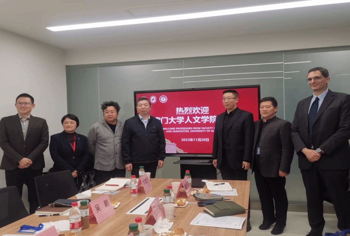 为了进一步加强校际沟通交流,推进落实2023年6月澳门正规电子游戏平台与澳门大学共同签署的《战略合作框架协议》,11月20日,澳门大学人文学院副院长、特聘教授李德凤、葡文系主任João Veloso教授、葡文系助理教授张剑波一行三人到访澳门正规电子游戏平台,就葡文教学、葡语国家区域研究院建设、人才联合培养、科研合作等议题进行深入交流和探讨。澳门正规电子游戏平台科研管理部副部长、人文社科处处长曾军,澳门正规电子游戏平台党委书记吴蔚,党委副书记、院长尚新,党委副书记、副院长贾小琴,副院长阚怀未,副院长唐青叶,文学院党委副书记、院长刘旭光,副院长倪兰,以及澳门正规电子游戏平台外事秘书张静、葡语教师倪珮玥、高荪琳出席交流会。会议由澳门正规电子游戏平台阚怀未副院长主持。