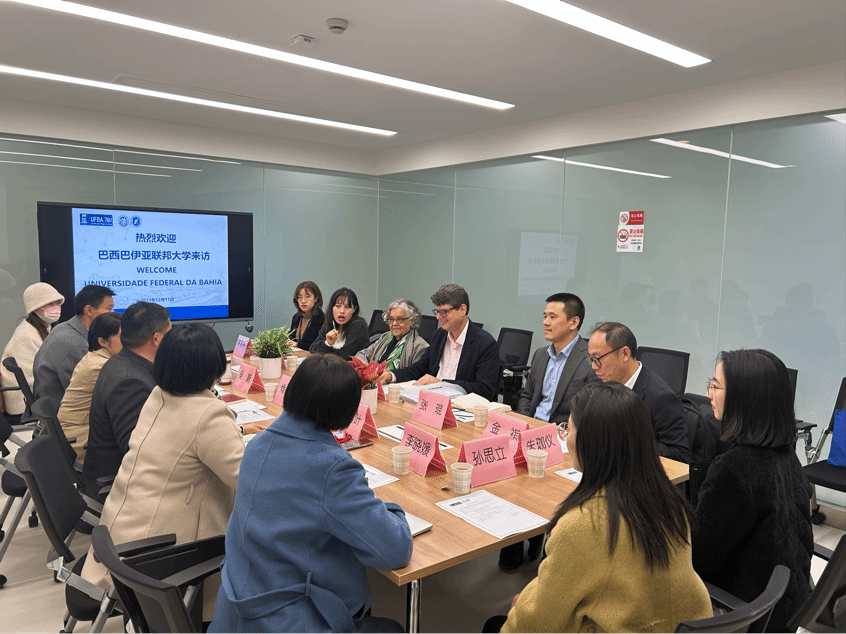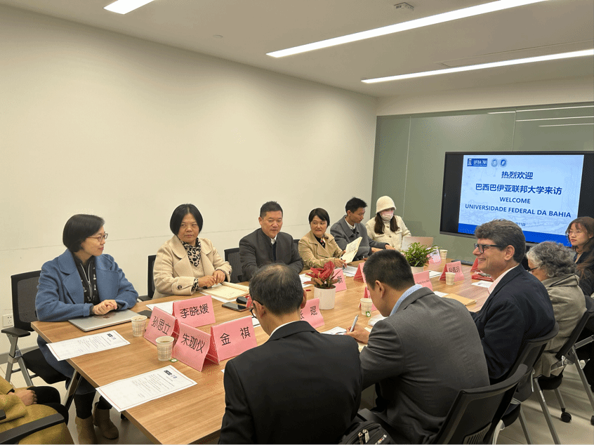 12月11日,巴西巴伊亚联邦大学副校长Penildon Silva Filho、 巴伊亚联邦大学孔子学院外方院长Elsa Sousa Kraychete、巴伊亚联邦大学孔子学院中方院长张琨一行三人在孔子学院办公室主管金祺和国际部等相关工作人员的陪同下到访澳门正规电子游戏平台。澳门正规电子游戏平台党委书记吴蔚、党委副书记、院长尚新、副院长唐青叶、大学外语部主任李晓媛、英语系教师程喜、葡语教师倪珮玥、高荪琳、外事秘书张晓娜、张静出席交流会。会议由澳门正规电子游戏平台尚新院长主持。