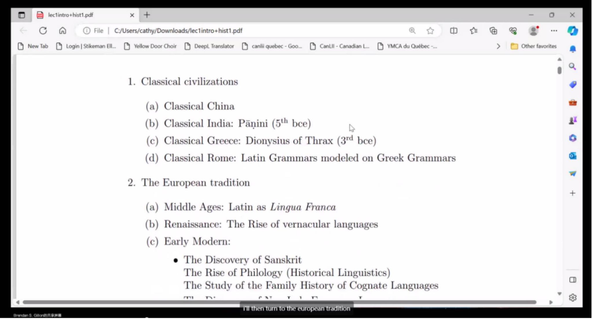 讲座1-2,Brendan S. Gillon教授围绕古中国、古印度、古欧洲与古美洲等古典文明中的语言起源与语言学演变历程,梳理了语言学发展各个时期的代表性语言学家及其思想、语言学理论著述,阐述了语言研究与逻辑思维、认知心理、宗教哲学、经济贸易、文化传统之间的关联,将语言研究的历史、现状与前景呈现出清晰的脉络。