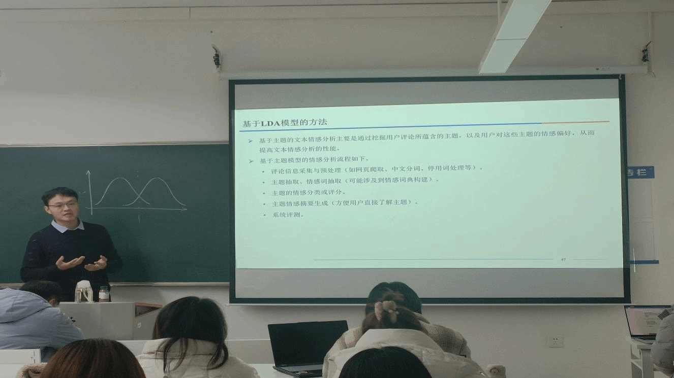 唐青叶教授向同学们简要介绍了王健嘉助理教授和此次讲座的目的。讲座伊始,王健嘉老师首先简单介绍了自然语言处理、Python技术和Anaconda这个软件的主要情况,同时向同学们展示了如何通过Anaconda下载Python。随后,王老师以购物网站和新闻内容分类为例进行实例分析。运用Python技术对购物网站的受众情感评价进行分析,分享了情感分析所用的各种数据处理软件和常见研究方法如情感词典、文本分类和LAD模型。另外,运用分类聚类进行新闻内容分类。这些方法和生动的案例拓展了同学们的思维,给同学们的论文选题写作以很多有益启迪。讲座之后,同学们就数据处理软件能否精准分类情感主题词和相关软件在语言学领域的应用等问题展开了激烈的讨论,王老师给予了细致的回答。最后,唐青叶教授对本次讲座进行总结,感谢王老师给大家现场演示Python技术,讲座实操性强,她希望同学们加强信息技术学习,提升科学素养,把数据技术和相关软件用于语言学研究,提升学术研究水平和能力。