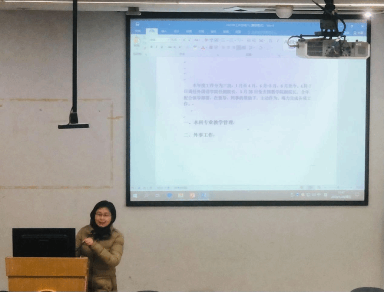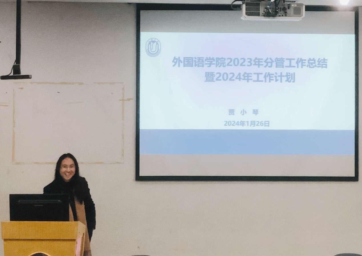 副院长戴朝晖就其分管的大学外语教学、研究生教学、学科竞赛、课程思政等工作进行了总结。2023年积极推进学院“三进”工作和外语课程思政建设,开设多语种“理解当代中国”公开课;推进人工智能与外语教学的融合,形成大学外语教学改革方案,探讨大学外语国际化合作前景;稳步推进研究生公共外语各项工作,强化课程学科团队建设,追求卓越研究生人才培养目标。2024年的工作重点是以建成世界一流特色鲜明的综合性研究型大学为目标,继续推进AI技术与外语课程的融合,长效实施教学质量计划,更好地服务于学校与国家。
