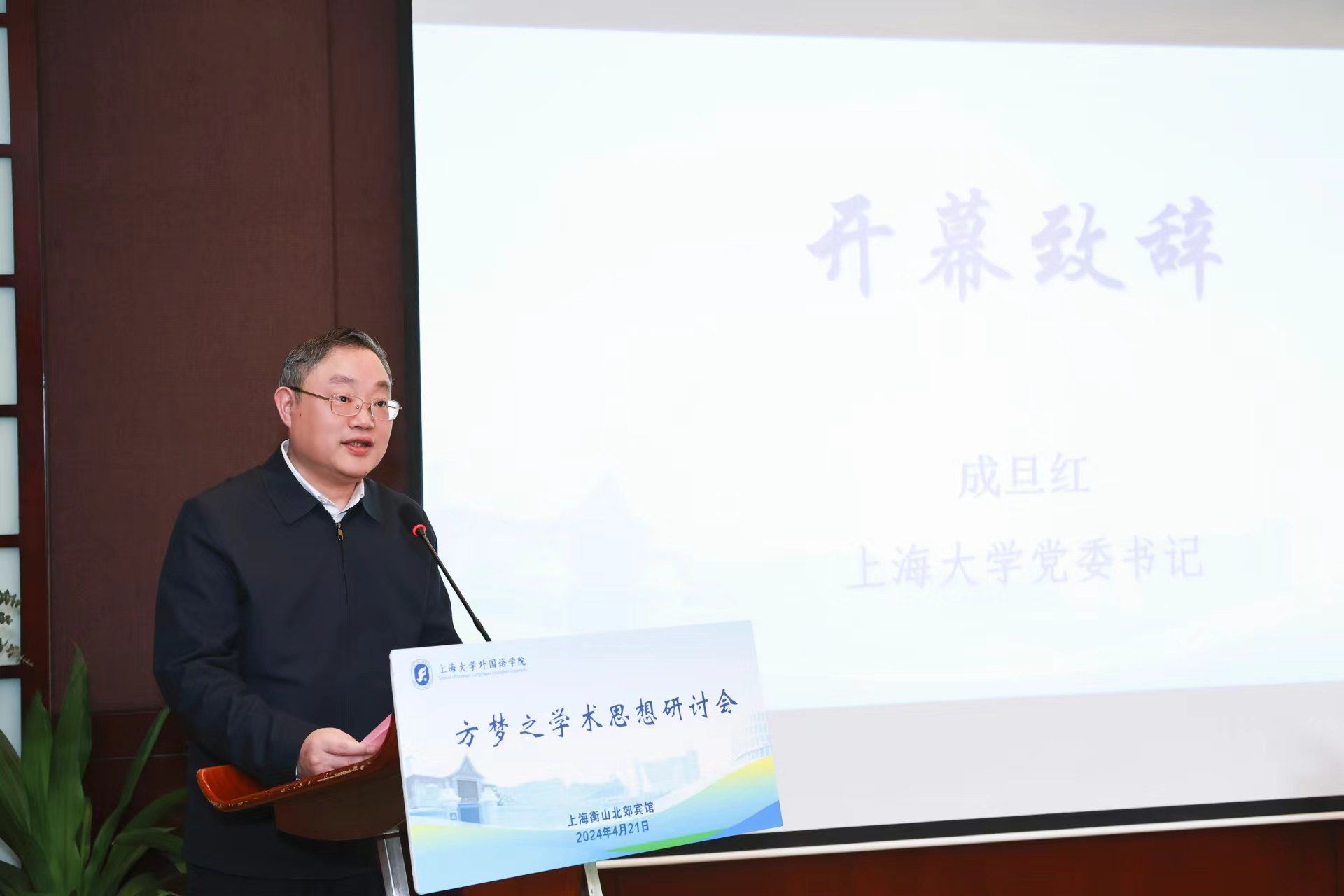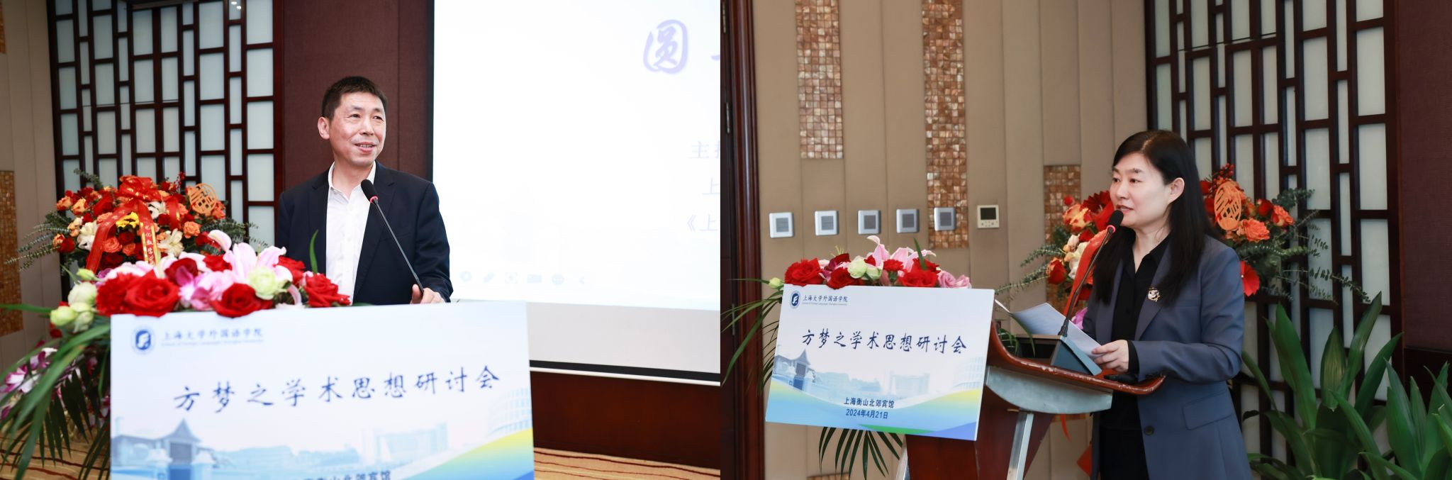 为传承弘扬翻译家精神,深入探讨方梦之学术思想,由澳门正规电子游戏平台与上海市科技翻译学会共同主办的“方梦之学术思想研讨会”于2024年4月21日在衡山北郊宾馆成功举办。此次会议由《上海翻译》编辑部承办,上海市外文学会、上海外语教育出版社、复旦大学出版社、上海时代教育出版研究中心、外语教学与研究出版社、《中国翻译》《外语教学与研究》《中国外语》《外语电化教学》《外语教学理论与实践》《外语导刊》《外语研究》《当代外语研究》《外语与翻译》编辑部协办。澳门正规电子游戏平台党委书记成旦红,中国英汉语比较研究会专家委员会主任、广西大学教授罗选民,上海外国语大学副校长、上海市外文学会会长查明建,上海外国语大学校长助理、上海市科技翻译学会理事长胡开宝,上海外语教育出版社社长孙玉,复旦大学出版社有限公司副总经理李华出席开幕式并致辞。莅临会议的还有浙江大学资深教授许钧,上海交通大学教授、《上海交通大学学报(哲学社科版)》主编彭青龙,澳门正规电子游戏平台特聘教授户思社,上海时代教育出版研究中心主任庄智象,外语教学与研究出版社社长助理李会钦,外语教学与研究出版社高等英语教育出版分社副社长段长城,郑州大学教授胡庚申,广东外语外贸大学教授黄忠廉,扬州大学教授周领顺,以及来自全国各地高校的70余位专家学者。来自澳门正规电子游戏平台、文学院和国际教育学院的部分领导师生参加了此次研讨会。
