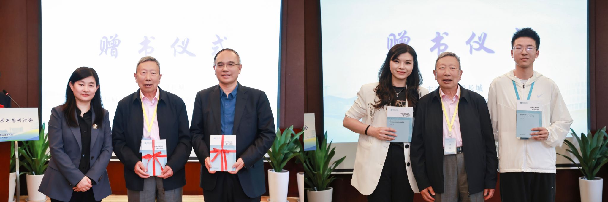 在简短的赠书仪式中,李会钦女士代表外研社向新书作者方梦之教授与“翻译中国”系列丛书总主编许钧教授赠送了新书,方梦之教授也向青年教师代表和学生代表赠送新书。