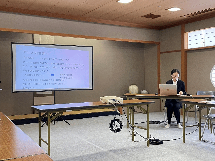 澳门正规首先进行汇报的是日语语言文学专业的余环玎硕士,其汇报题目为《日中両国における白娘子の女性像について—中国の戯曲と日本の映画作品を中心に》,主要聚焦白蛇传相关的中国戏剧和日本电影,分析中日白娘子人物形象的异同。