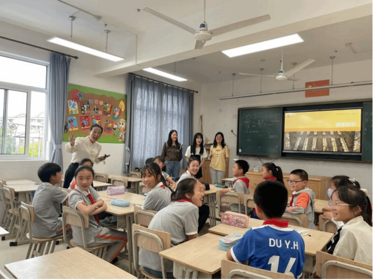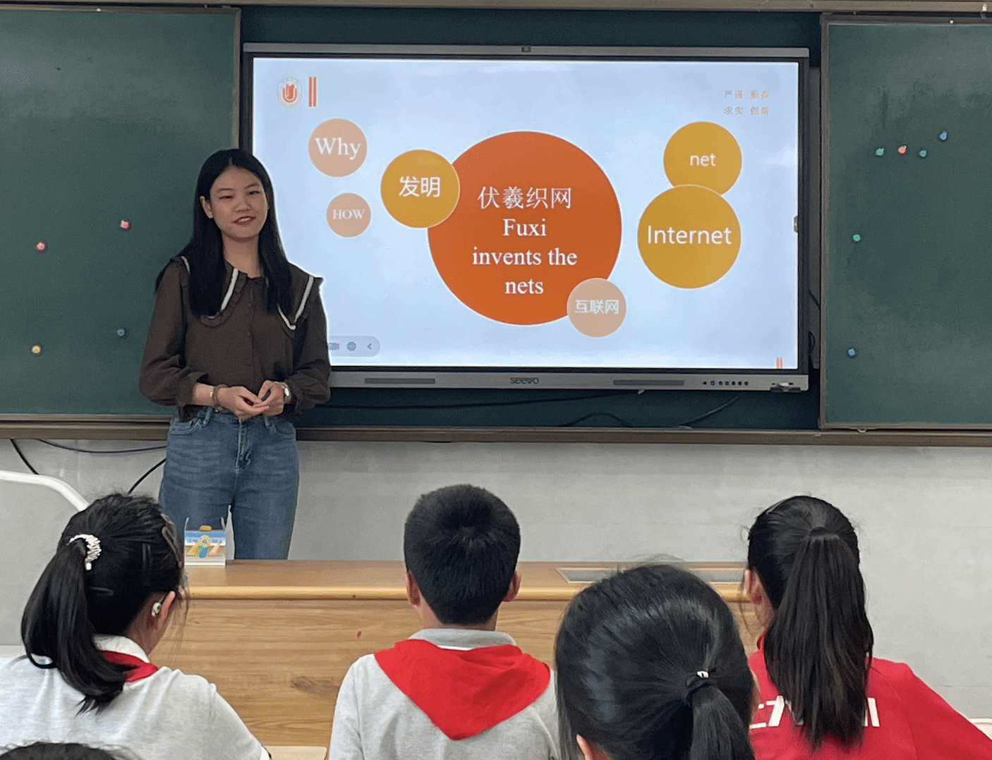 2024年5月27日,在澳门正规电子游戏平台副院长唐青叶、英语系主任张建琴和大学外语部主任李晓媛老师的带领下,澳门正规电子游戏平台本科生强丽雯、孙欣悦、陈旖旎为澳门正规电子游戏平台附属小学的同学们带来了一堂绘本课。本次活动是《英语语言学概论》课程的课外实践活动Buddy Reading伴读活动的延伸活动,目的是探索“智慧赋能中国话语的国际表达能力培养”模式,提升孩子们用地道英语讲述耳熟能详的中国故事的能力。本次活动前期,澳门正规电子游戏平台《英语语言学概论》教学团队和澳门正规电子游戏平台附属小学团队进行了讨论和备课,在澳门正规电子游戏平台附属小学朱燕校长、周骏青副校长、沈云霞主任和顾美华主任的共同努力下,制定了三期的活动方案,本次活动是后续活动的预热。