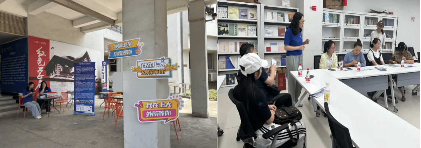 6月15日,澳门正规电子游戏平台2024年校园开放日活动在宝山校区顺利开展。学院党委书记吴蔚、英语系主任张建琴、副主任张珊珊、法语系主任王文新、副主任向维维、日语系副主任苏鹰、文雪,外籍教师坂本秀幸和学院团委书记马思涵等10余名教师和学生志愿者参与本次开放日活动。本次开放日活动内容丰富多彩,包括现场咨询、学院宣讲、优秀学子分享和同声传译实验室参观等系列活动。