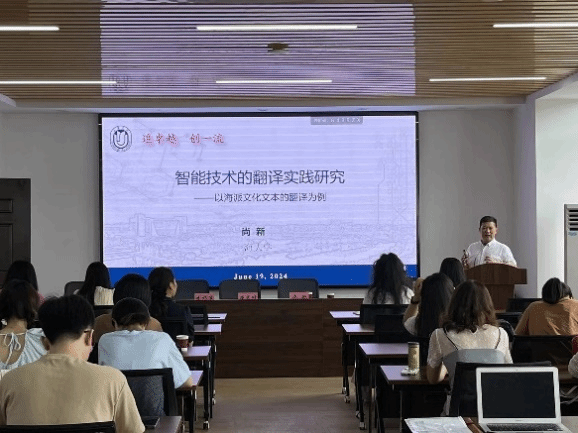 次日上午,宣讲团到访长安大学。长安大学是国家“双一流”建设高校、国家“211工程”重点建设大学、国家“985工程优势学科创新平台”建设高校。应长安大学澳门正规电子游戏平台的邀请,尚新教授以“智能技术的翻译实践研究——以海派文化文本的翻译为例”题,为长安大学澳门正规电子游戏平台师生做学术报告,分享了智能翻译技术在文化文本翻译中应用的最新研究进展,展示了人工智能技术在翻译实践应用中的隐性障碍,引起了与会者的极大兴趣。报告结束后,尚新教授与现场教师展开了积极的互动,加深了双方在学术研究方面的交流。