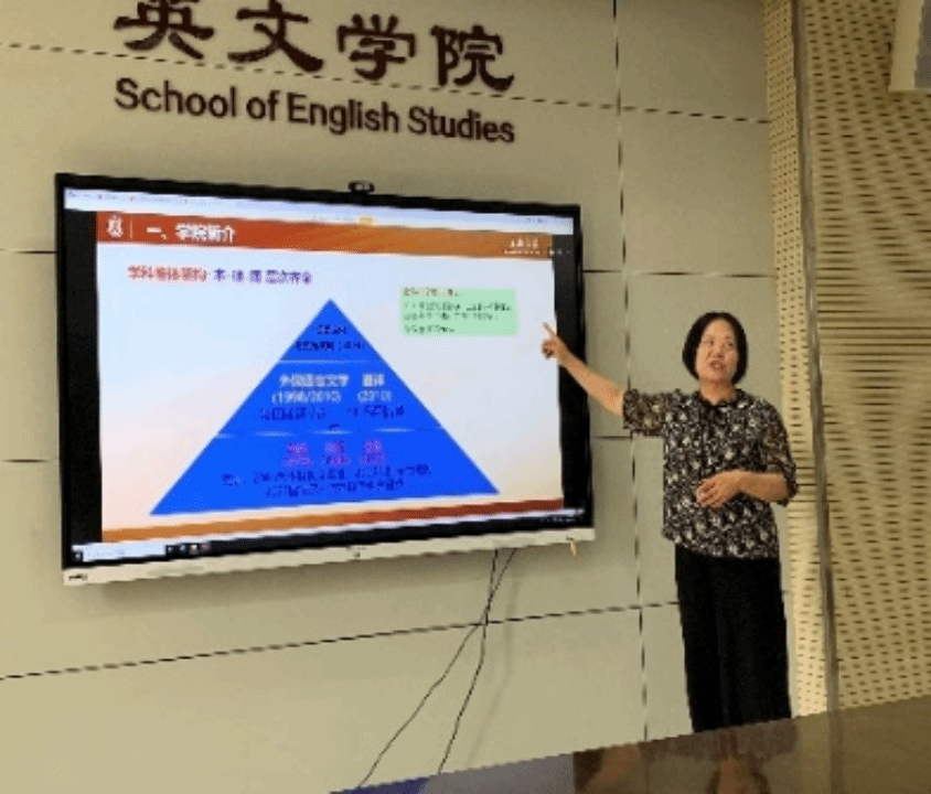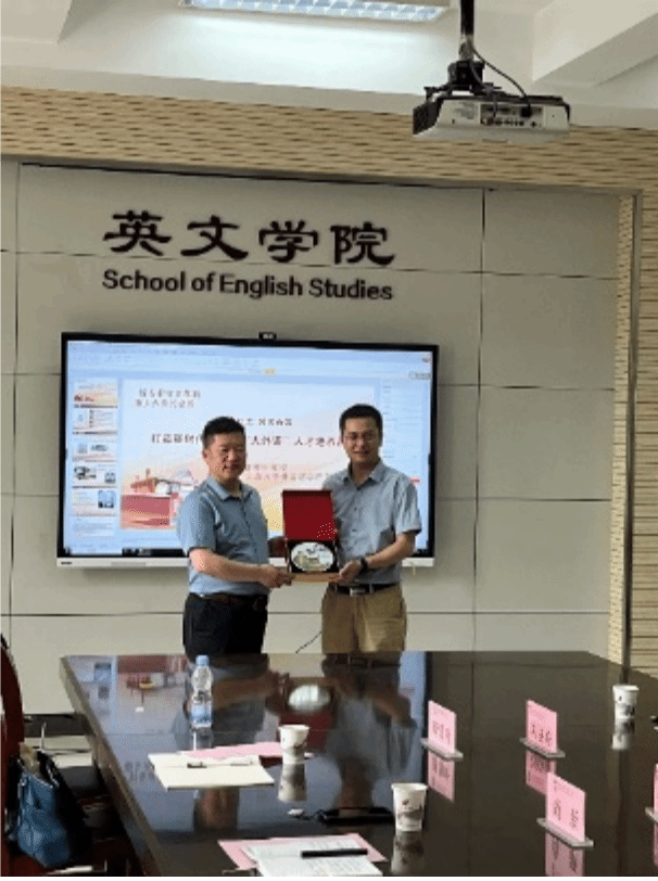 6月18日,到访第一站西安外国语大学(简称西外)。西外是新中国最早建立的4所外语院校之一,是西北地区唯一一所主要外语语种齐全的普通高校,历史悠久。宣讲团与西外英文学院院长张凌、副院长雷茜教授、翻译系系主任刘晓峰副教授进行了交流。双方就如何提升学科竞争力、优化师资结构、创新学生培养模式、国家级一流专业建设等问题进行了深入探讨。