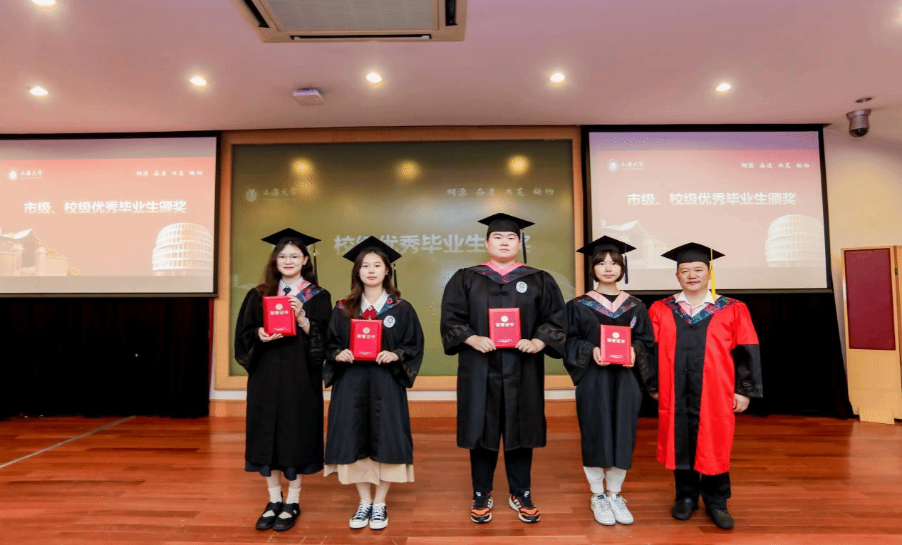 随后,吴蔚书记和尚新院长为上海市优秀毕业生们颁发证书;黄欣老师、李晓媛老师、马拯老师和于梅欣老师为澳门正规电子游戏平台优秀毕业生们颁发证书。毕业生们从颁奖嘉宾手中接过的奖状,不仅是一份荣誉、辛勤学习的回报,更是承载了学校、学院、导师的殷切希望,希望他们谨记那份被褒奖的努力,在未来的道路上不忘初心,砥砺前行,向着更广阔的人生舞台接续奋斗。