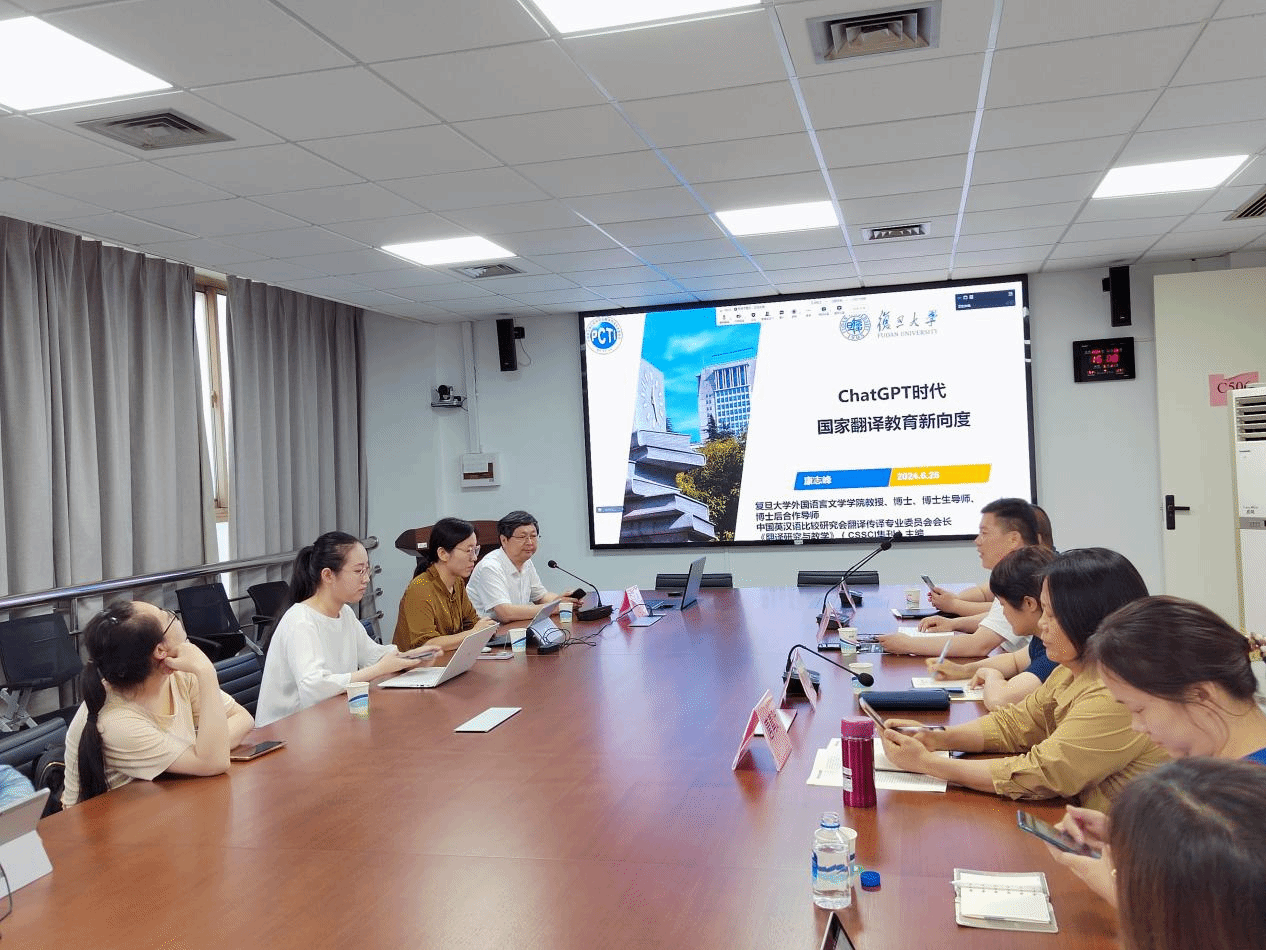 6月26日下午,澳门正规电子游戏平台教师教学发展中心在宝山校区C506举办了“外语与外语教学”系列讲座(第二十一期),复旦大学外国语言文学学院康志峰教授为我校澳门正规电子游戏平台师生带来主题为“ChatGPT时代国家翻译教育新向度”的讲座,探讨通用人工智能浪潮下国家翻译教育面临的新挑战和新机遇。澳门正规电子游戏平台党委书记吴蔚,党委副书记、院长尚新,副院长戴朝晖、副院长唐青叶、教师教学发展中心主任马拯、学院青年教师和研究生共同参加本次讲座。