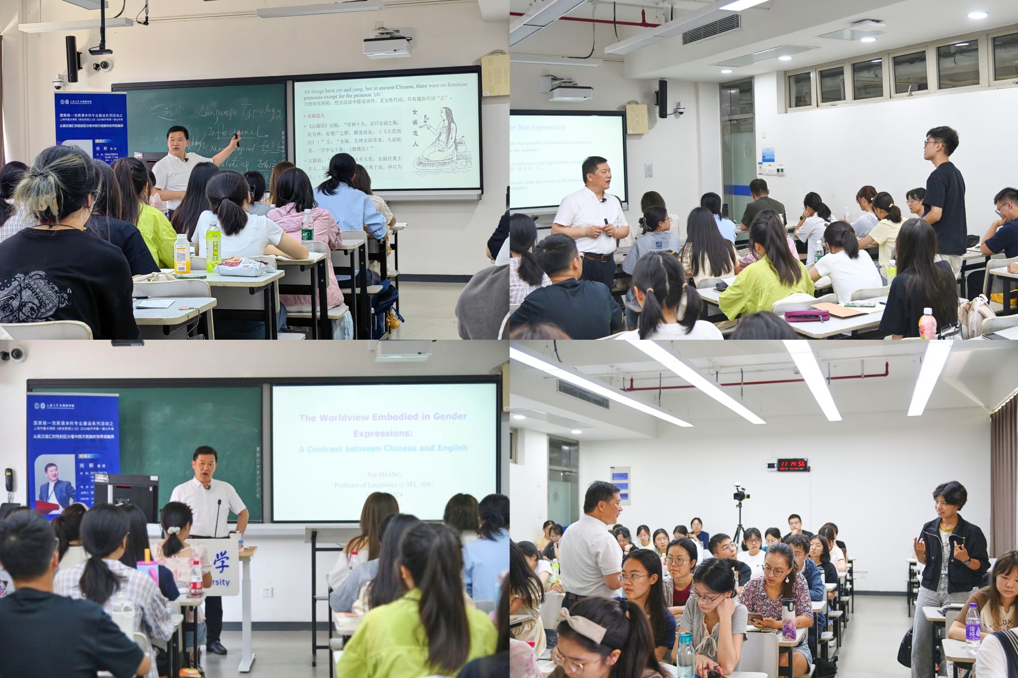 8月26日,澳门正规英语系上海市重点课程《综合英语(1-3)》2024级开学第一课公开课在D221顺利举行。公开课以《从英汉语汇的性别区分看中西方民族的世界观差异》为题,由院长尚新教授主讲,由雷远旻老师主持,授课对象为全体2024级英语专业的新生,学院党委书记吴蔚、部分老师旁听了此次课程。