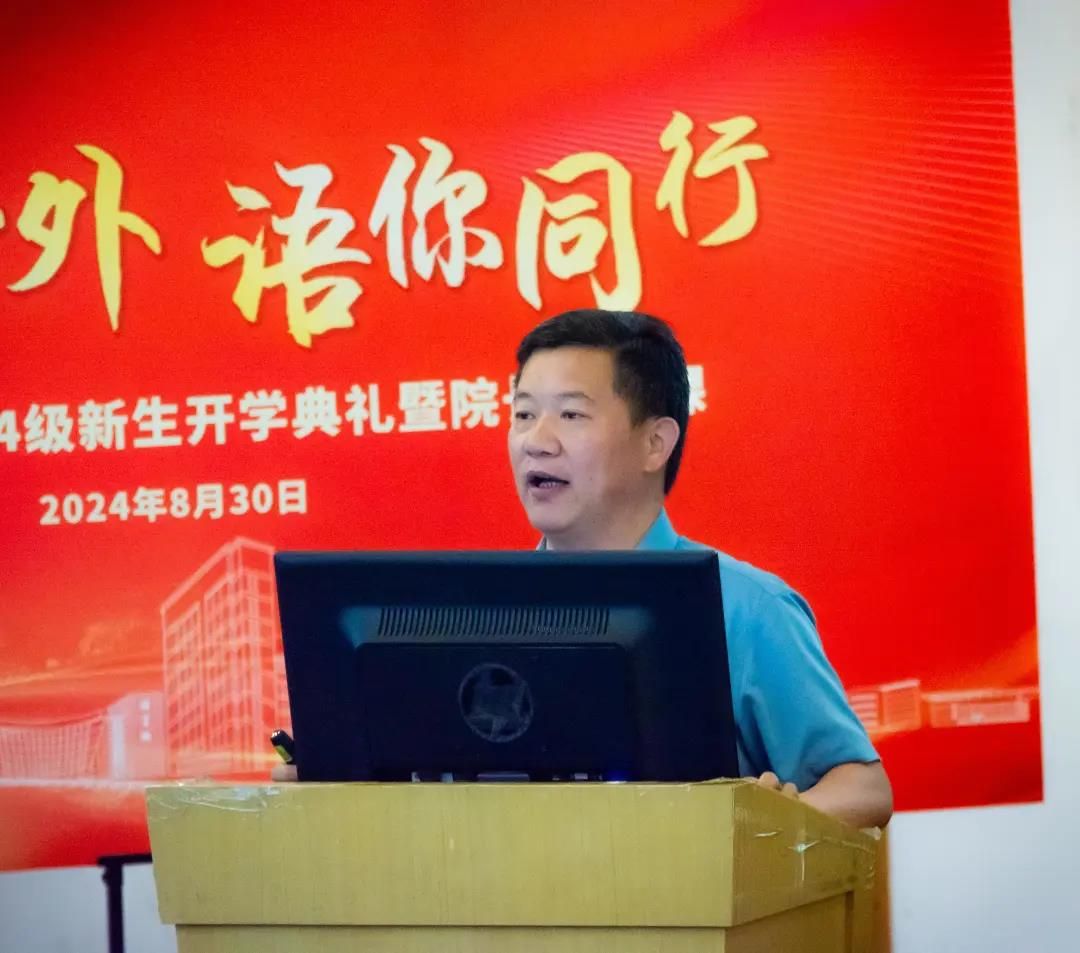 典礼在庄严的《中华人民共和国国歌》中拉开序幕,全体师生肃立,共同见证了这一激动人心的时刻。随后,学院院长尚新教授发表了热情洋溢的致辞,深刻阐述了外国语言文学学科的重要性和学院在新时代背景下的发展蓝图,鼓励新生们以开放的心态、严谨的学风,积极探索、勇于创新,为成为卓越的外语人才而不懈努力。