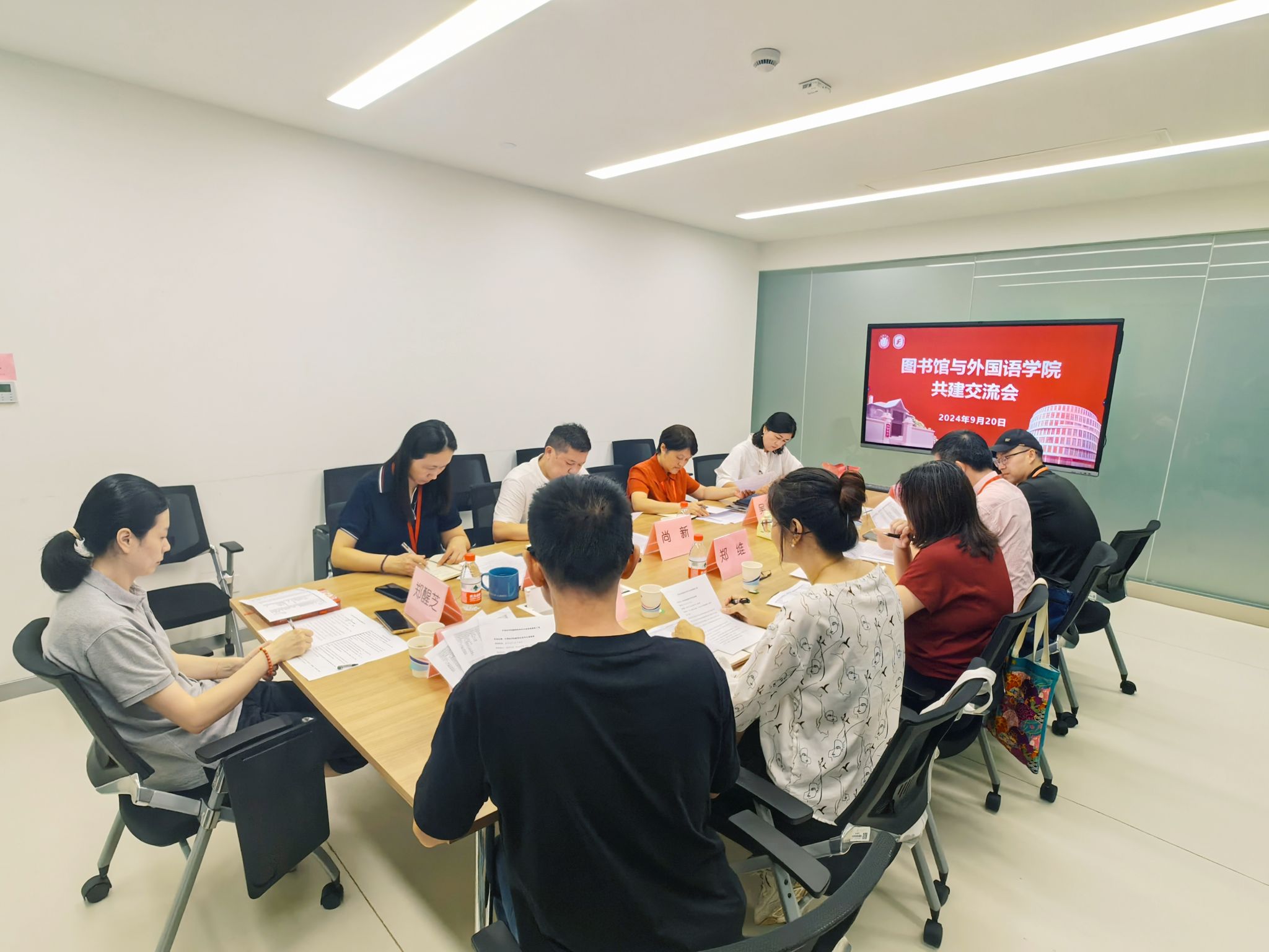 在交流研讨环节,图书馆资源建设中心的老师们详细介绍了外语语言类电子资源、外语类核心期刊、读者荐购、道博书屋荐阅平台等相关资源及服务内容。