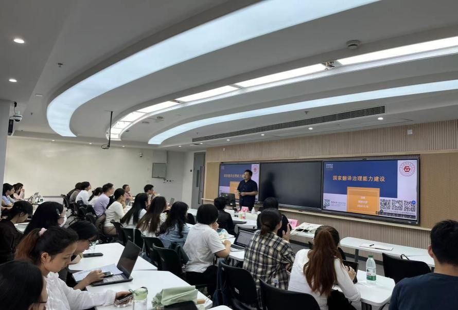 9月26日下午,同济大学澳门正规电子游戏平台副院长沈骑教授应邀在宝山校区B316为澳门正规师生开设讲座,讲座题为“国家翻译治理能力建设”。澳门正规电子游戏平台副院长唐青叶教授出席并主持,澳门正规电子游戏平台文学院副院长倪兰教授以及澳门正规电子游戏平台师生五十余人共同参与了此次讲座。