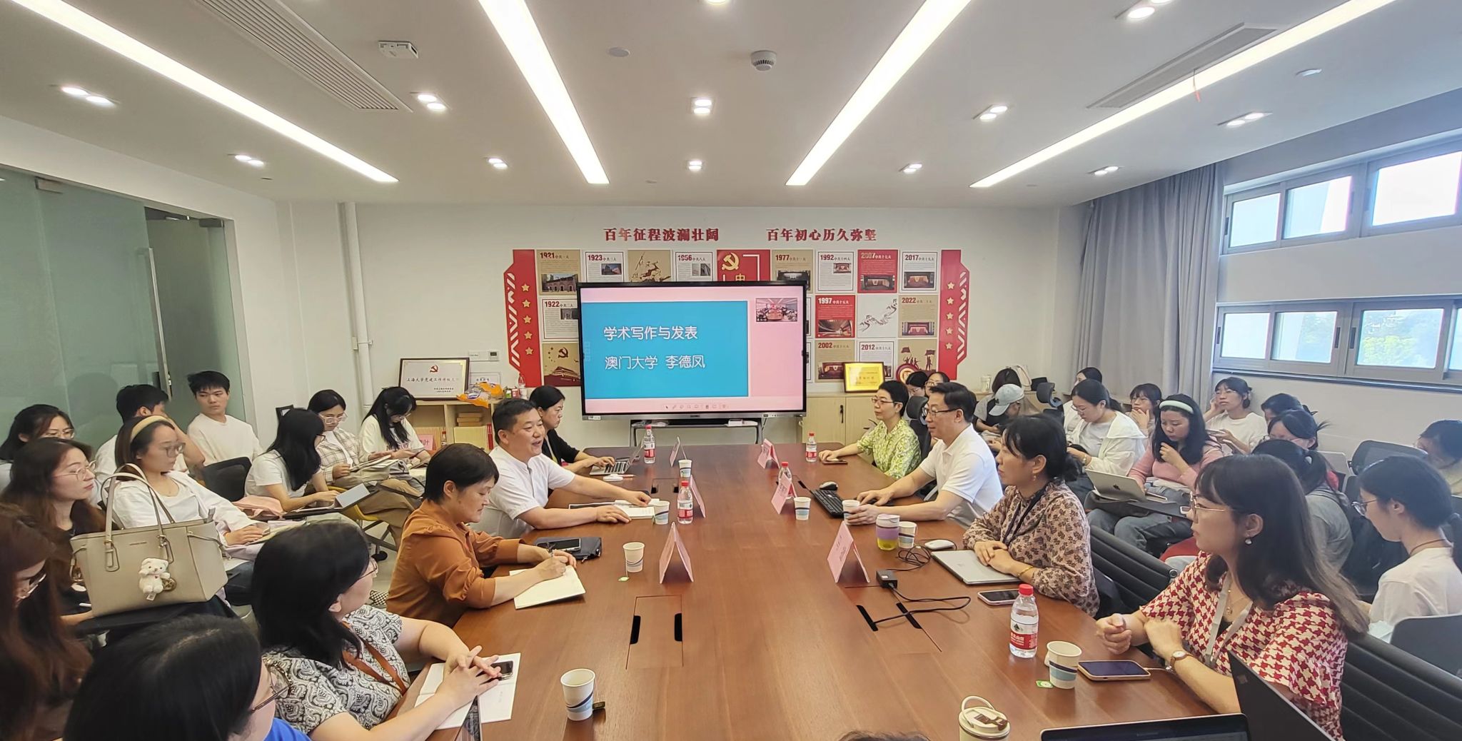 9月27日下午,澳门大学人文学院副院长李德凤教授在宝山校区C412为澳门正规师生开设讲座,讲座主题为“学术论文写作与发表”。澳门正规电子游戏平台院长尚新教授主持了本次讲座,澳门正规电子游戏平台党委书记吴蔚老师及线上线下共百余名师生聆听了此次讲座。