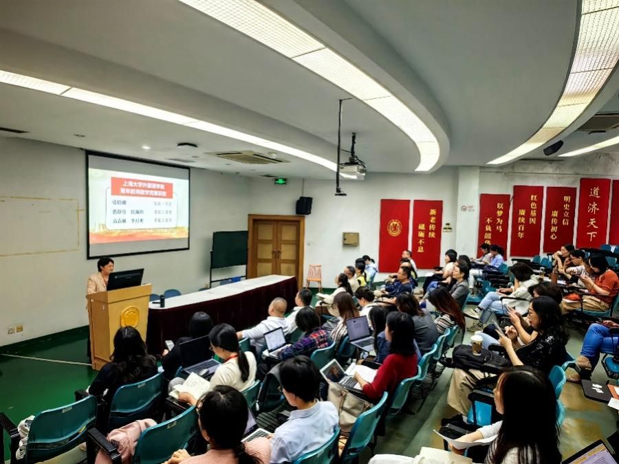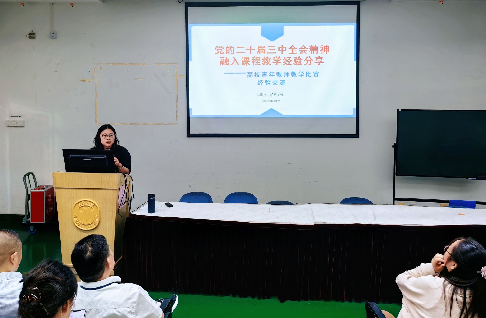 随后,大会的第三部分是党的二十届三中全会精神融入课程教学的经验分享。为深入学习贯彻党的二十届三中全会精神和习近平总书记在全国教育大会上的重要讲话精神,并结合学院工作实际,学院特邀马克思主义学院、学校党的二十届三中全会精神宣讲团成员张青子衿老师,结合自身参加青教赛的比赛经历以及参赛经验,与学院老师们分享如何将党的二十届三中全会精神有机融入到日常的课程教学中。通过张老师的生动分享,使全体老师深切感受到将课程思政融入课堂教学全过程的重要性和其有效方法路径,包括价值导向的政治正确、教学内容的精准贴切以及教学方法的创新有效等,并对青教赛的总体情况有了更加全面深刻地了解。张老师特别强调了反复磨课的重要性,只有熟悉教学过程,才有可能在比赛中灵活应对突发情况,她还建议外语学院的老师们可以从党的创新理论及重要文件中抓取说课的主题,比如探讨外语学科对讲好中国故事、中华文化国际传播、中国特色大国外交、文明交流互鉴的意义,探索和创新外语课程思政。