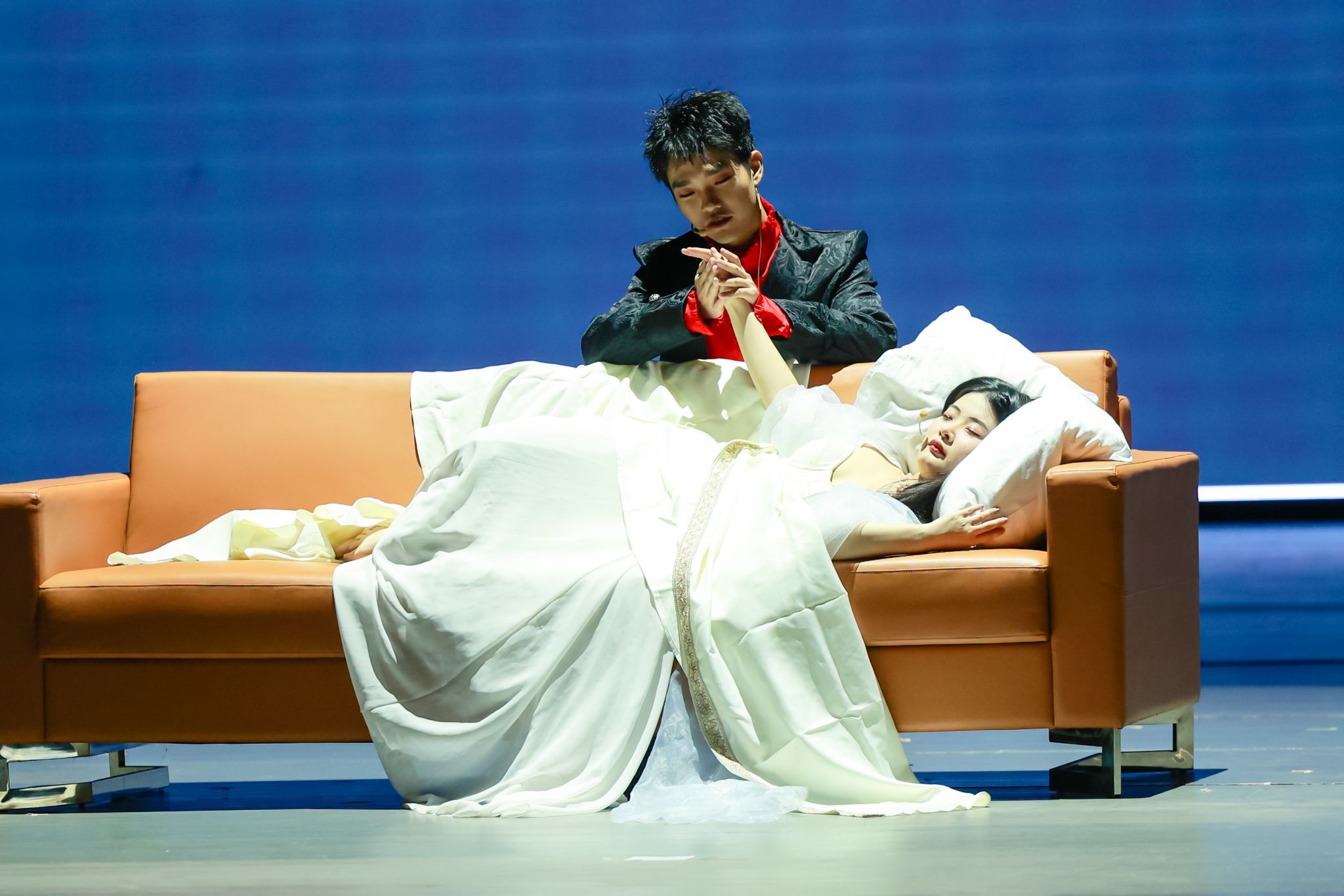 表演期间,各评委专家做出点评。其中,上海外国语大学王岚教授指出整体背景与故事的融合堪称巧妙,富有创意,音乐与剧情的契合度极高。复旦大学张琼教授不仅赞赏了演员们对角色的精彩诠释,还指出了援引多部戏剧经典、使用双关语的亮点,并探讨了戏剧如何通过角色和情节触动人心。广西大学罗选民教授结合时代背景,剖析了戏剧的内涵、演绎效果以及主题所蕴含的情感与精神,强调戏剧更应注重过去、现在与将来的有机融合。澳门正规电子游戏平台院长尚新教授赞赏了作品对人性复杂性的深刻描绘,尤其是权力欲望与罪恶之间的表现张力,以及舞台设计和视觉美学上的卓越表现。