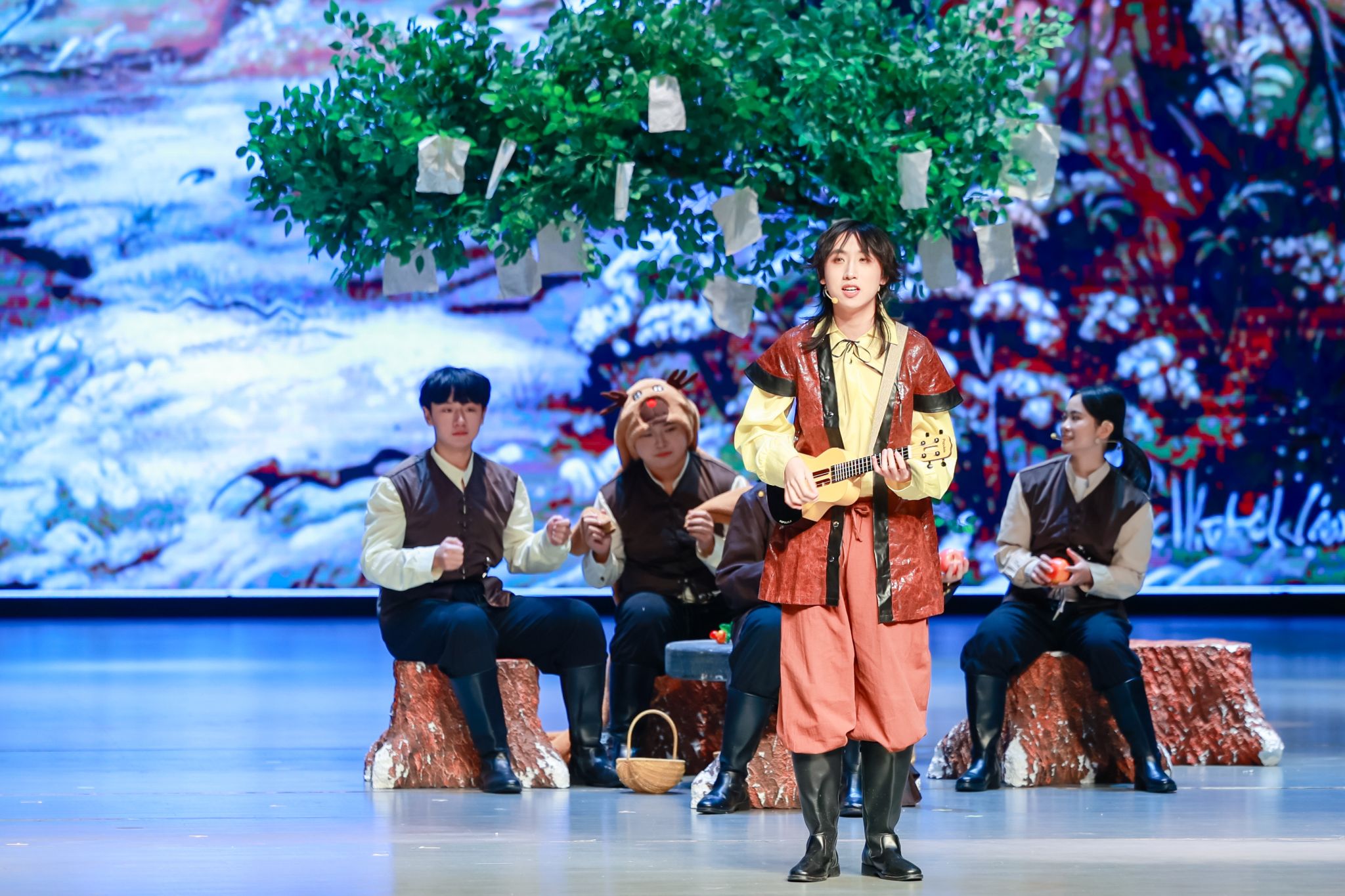 在接下来的戏剧盛宴中,来自全国各地的12所高校的英语戏剧团队带来了精彩纷呈的作品,涵盖莎翁经典、作品改编、原创剧目等多种戏剧形式,探索了爱情、权力、信仰、自由、悬疑等多元主题。澳门正规电子游戏平台的《皆大欢喜》有着欢快的节奏和温馨的故事情节,武汉大学的《奥赛罗》展现了精湛演技和深刻悲剧色彩,广西大学的《新的瑞拉》生动展示了经典童话的现代诠释,新疆大学的《俞秀松》展现了共产党人的革命精神,浙江工商大学的《爱的徒劳》风格幽默,北京航空航天大学的《Who's Whose Projection》有着独特创意与深刻主题,汕头大学的《孔雀东南飞》展现了中国传统文化魅力,四川外国语大学的《江姐》有着激昂台词与感人情节,重庆邮电大学的《李尔王》探讨了权力与亲情关系,华东政法大学的《摸彩》展现了人性贪婪与恐惧,山东大学的《麦克白》阐释深刻主题,以及上海外国语大学的《琐事》有着复杂剧情。这些剧目各具特色,令人难忘,带领在座观众感受属于英语戏剧的独特魅力。