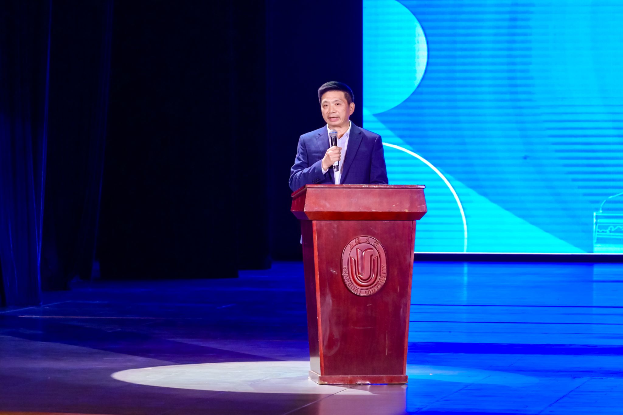 随后,澳门正规电子游戏平台党委书记吴蔚作为戏剧节承办单位代表发言,此次戏剧节的成功举办,离不开所有参与者的共同努力和辛勤付出,并表示未来将持续推动英语戏剧的发展,为更多的青年学子提供展示才华的舞台,同时也期待更多优秀英语戏剧作品的涌现。第四届全国大学生英语戏剧节承办单位代表武汉大学外国语言文学学院鄢畅老师回顾了武汉大学的英文戏剧传统与成就,并诚挚邀请大家明年相聚武大,共襄戏剧盛宴。