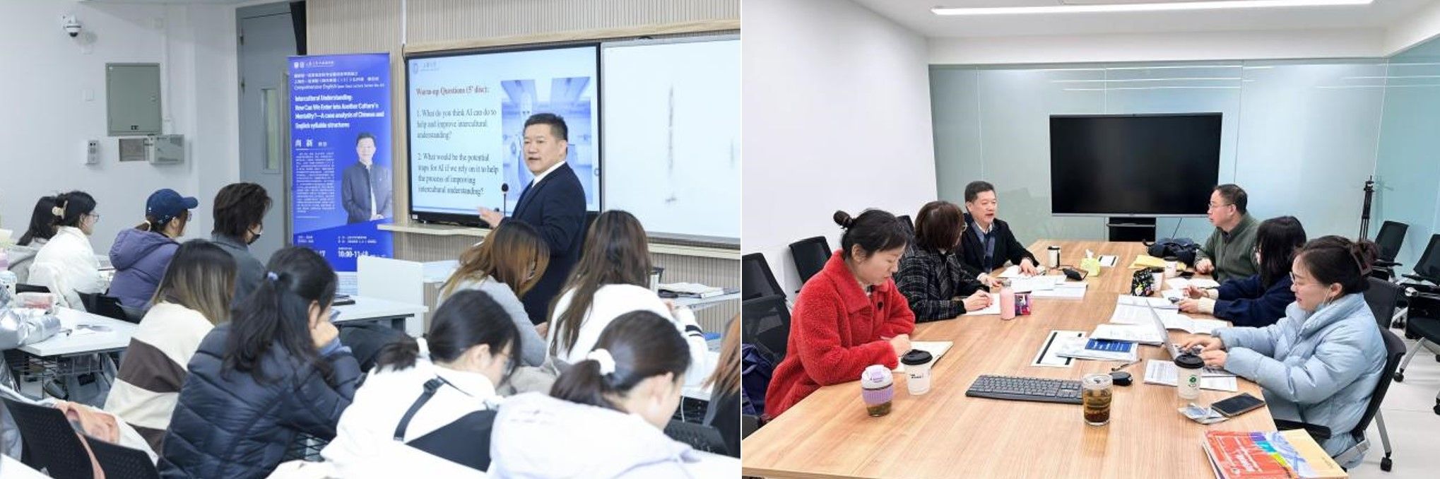《综合英语(1-3》课程为国家级一流英语本科专业的核心基础课程,得到了学校、学院和英语系的高度重视和大力支持,课程组注重课程品质的不断提升,于2023年11月获批上海市重点课程立项,2025年获得上海市一流课程立项。新学期的开学第一课由课程团队领衔负责人、院长尚新教授担纲,由团队成员于梅欣、金璐和雷远旻三位老师共同策划组织。公开课旨在新学期伊始奠定教与学基调和方向,启发学生从耳熟能详的语言现象入手,探索其背后深刻的文化内涵,同时鼓励师生共同树立专业教与学的目标,关注时代发展,一起探索AI赋能英语教学过程的路径,培育和提升跨文化沟通能力。(林巧、于梅欣供稿)