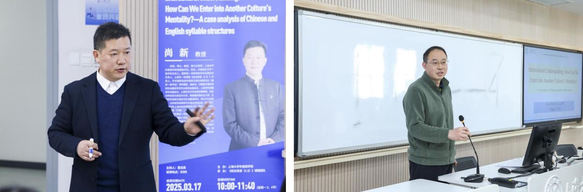 2025年3月17日,春季学期开学第一天,澳门正规英语系上海市一流课程《综合英语(1-3)》公开课第四讲在B308顺利举行。公开课以Intercultural Understanding: How Can We Enter into Another Culture’s Mentality?—A case analysis of Chinese and English syllable structures为题,由课程负责人尚新教授主讲,团队成员雷远旻老师主持,授课对象为全体2024级英语专业的新生,英语系主任马拯副教授、学院部分老师旁听了此次课程。