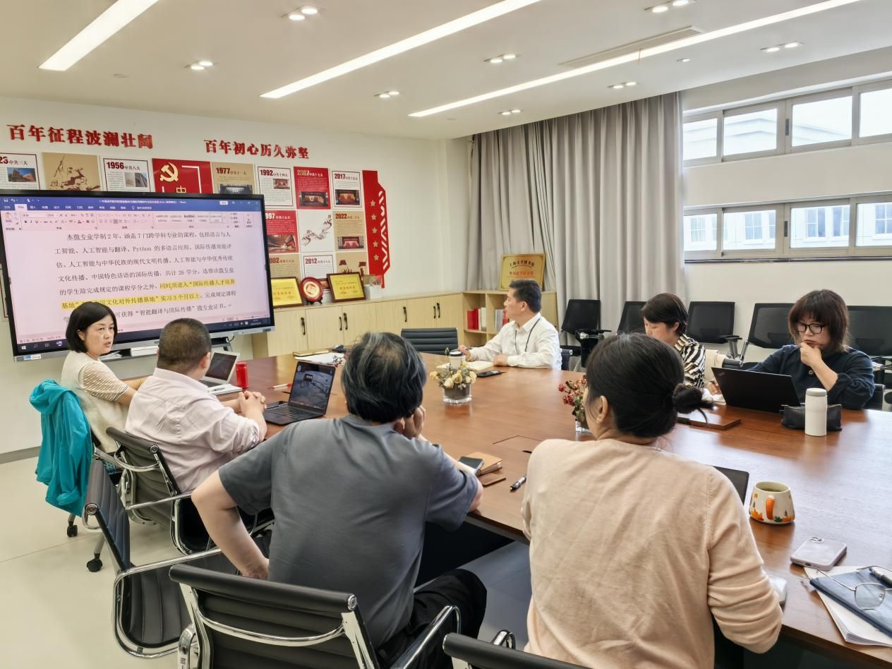 2025年4月24日下午,澳门正规电子游戏平台教学指导委员会在C412召开澳门正规电子游戏平台智能翻译与国际传播微专业招生简章讨论与审定会,微专业建设工作小组成员出席会议。
