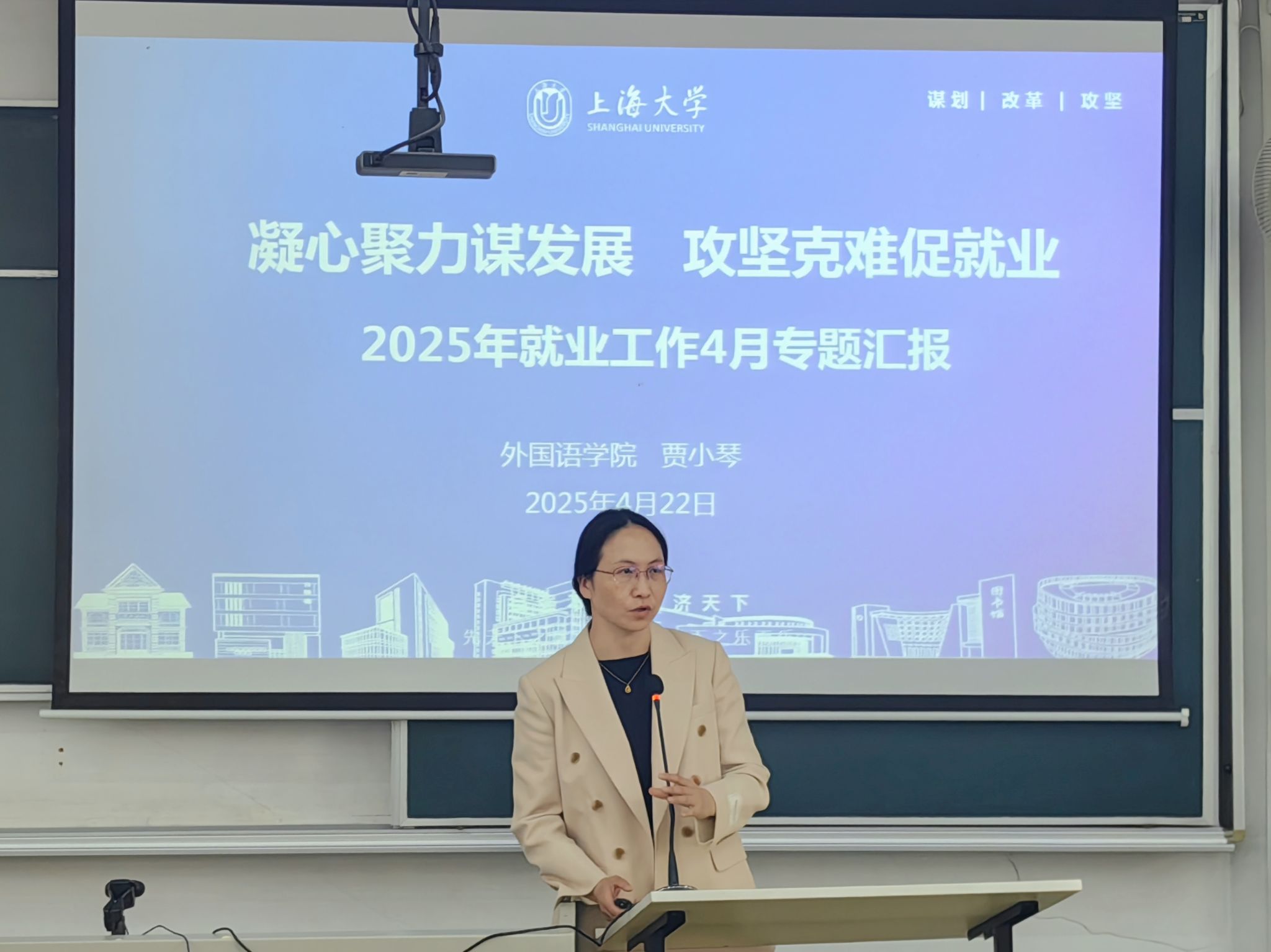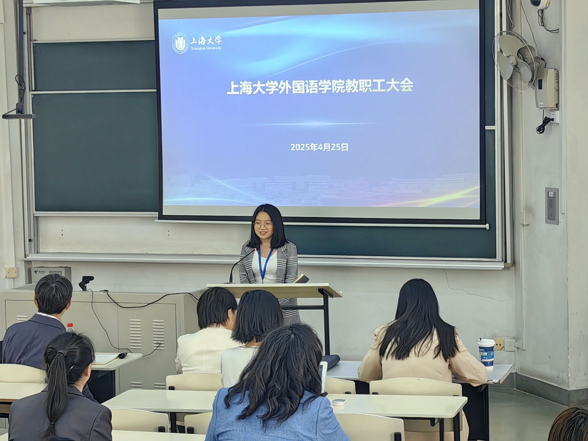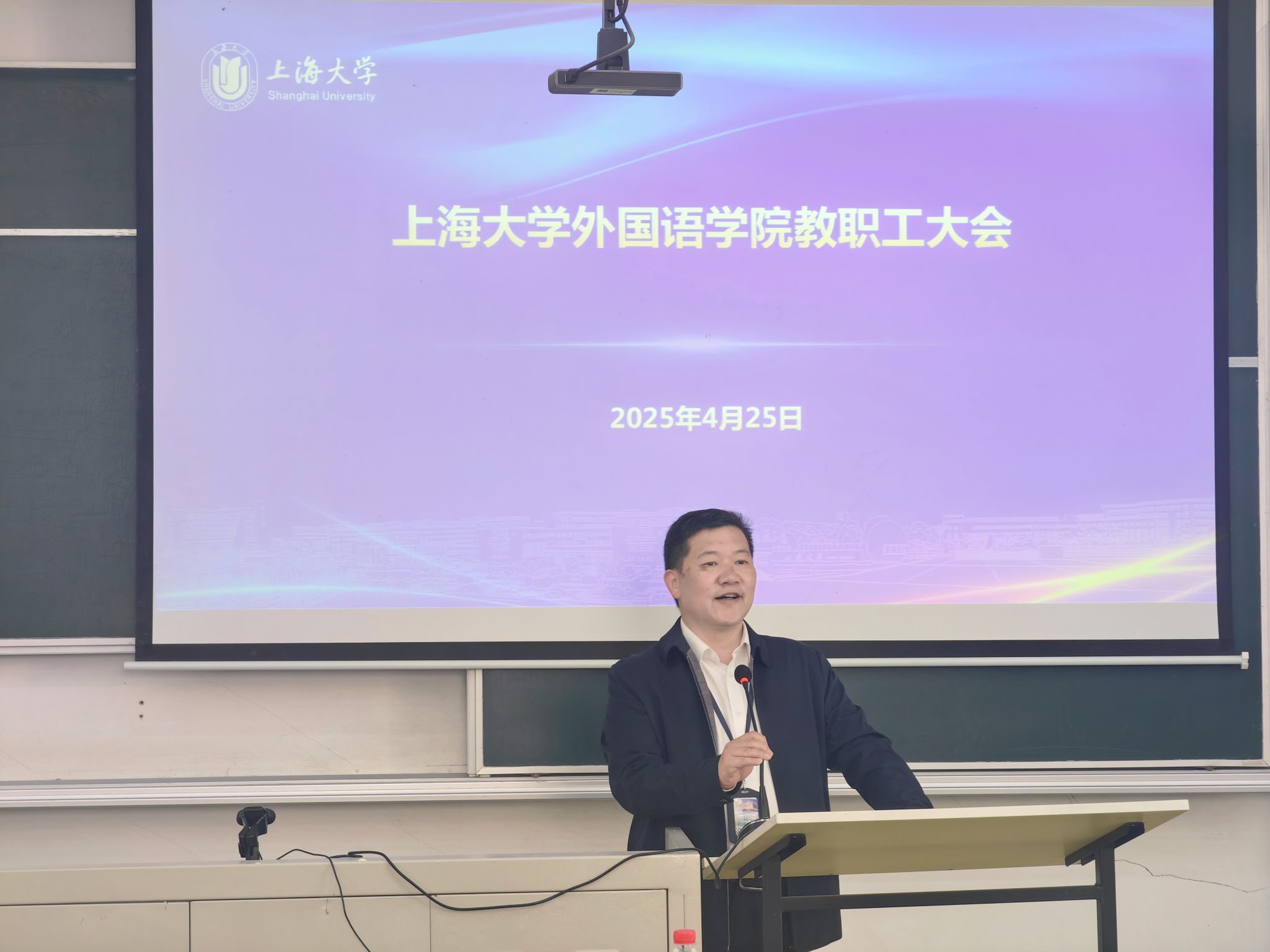 2025 年 4 月 25 日,澳门正规电子游戏平台教职工大会在 CJ207 教室召开。学院党政领导班子成员与全体教职工齐聚一堂,围绕人工智能时代外语专业建设新方向、就业工作新挑战等核心议题展开深入研讨,共同探寻外语专业高质量发展的创新路径。本次大会由党委副书记、院长尚新主持。