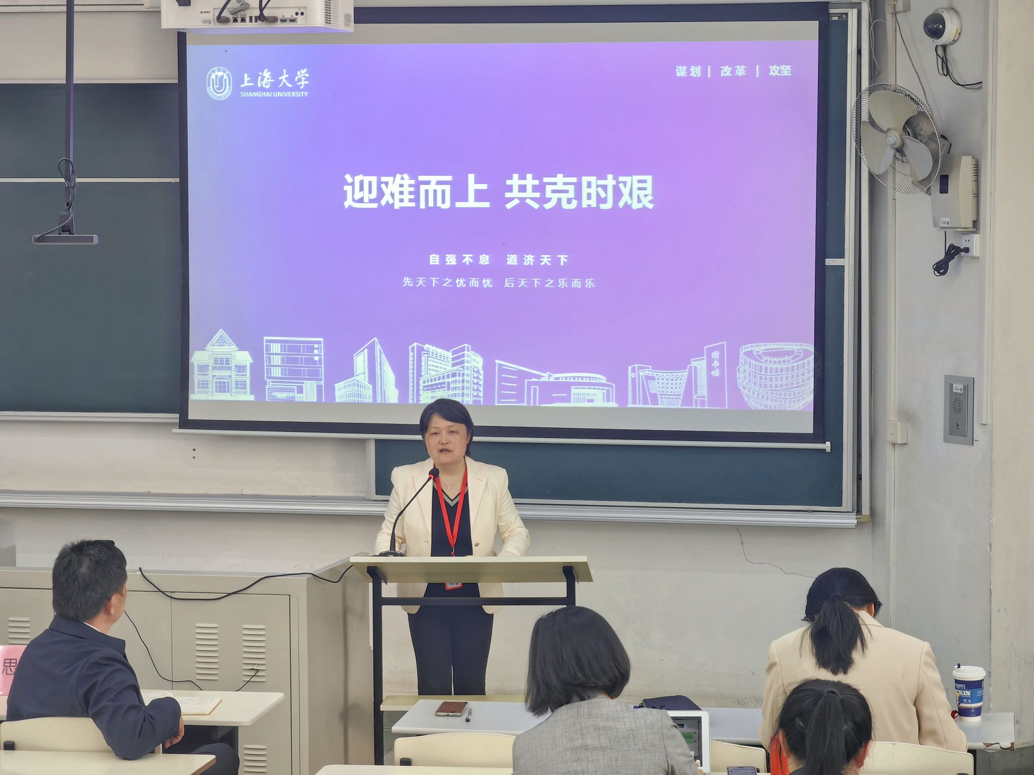 会议最后,党委书记吴蔚作总结发言。她向全体教职工通报了近期三项重点工作:一是学院巡察工作的推进情况,强调巡察对规范管理、促进发展的重要意义;二是院庆活动的筹备事项,号召全体教职工积极参与,共同为学院庆典增光添彩;三是着重强调外语专业转型升级的紧迫性和必要性,指出唯有主动变革,才能突破发展困境。吴蔚书记号召全体教职工统一思想、凝聚共识,将会议精神切实落实到实际工作中,以实干担当推动学院在挑战与机遇中加快转型升级,实现高质量发展。