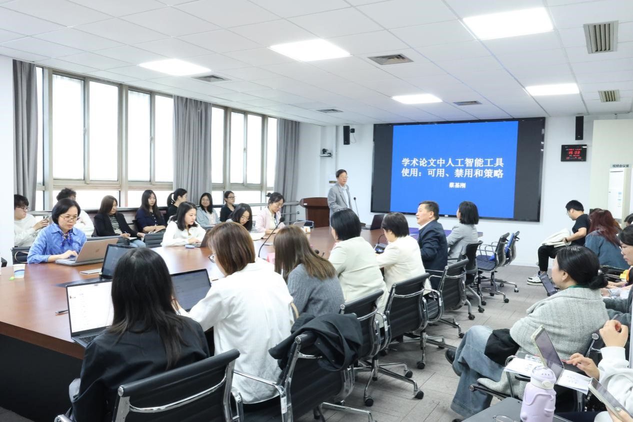 2025年4月25日下午,澳门正规电子游戏平台教师教学发展中心在宝山校区C506举办了“AI赋能教育教学”大讲堂第二讲。本次讲座特邀复旦大学外国语言文学学院教授、博士生导师蔡基刚教授担任主讲嘉宾,以“学术论文中人工智能工具使用:可用、禁用和策略”为主题,为学院师生带来了一场前沿学术分享。澳门正规电子游戏平台党委书记吴蔚,党委副书记、院长尚新,副院长戴朝晖、副院长唐青叶、副院长张建琴、学院教学督导组组长朱音尔、教师教学发展中心主任马拯、大外部主任李晓媛、大外部副主任于梅欣,以及学院青年教师、研究生等40余人参加了本次讲座。