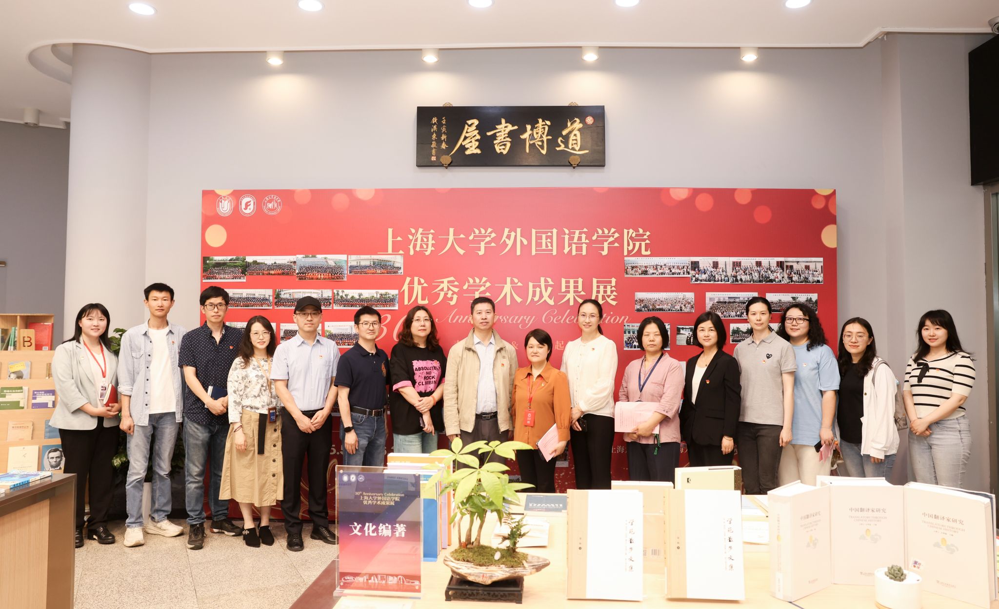 现场的师生代表在朱一佳、徐晓老师的导引下饶有兴致地参观了学术展,并在道博书屋合影留念。