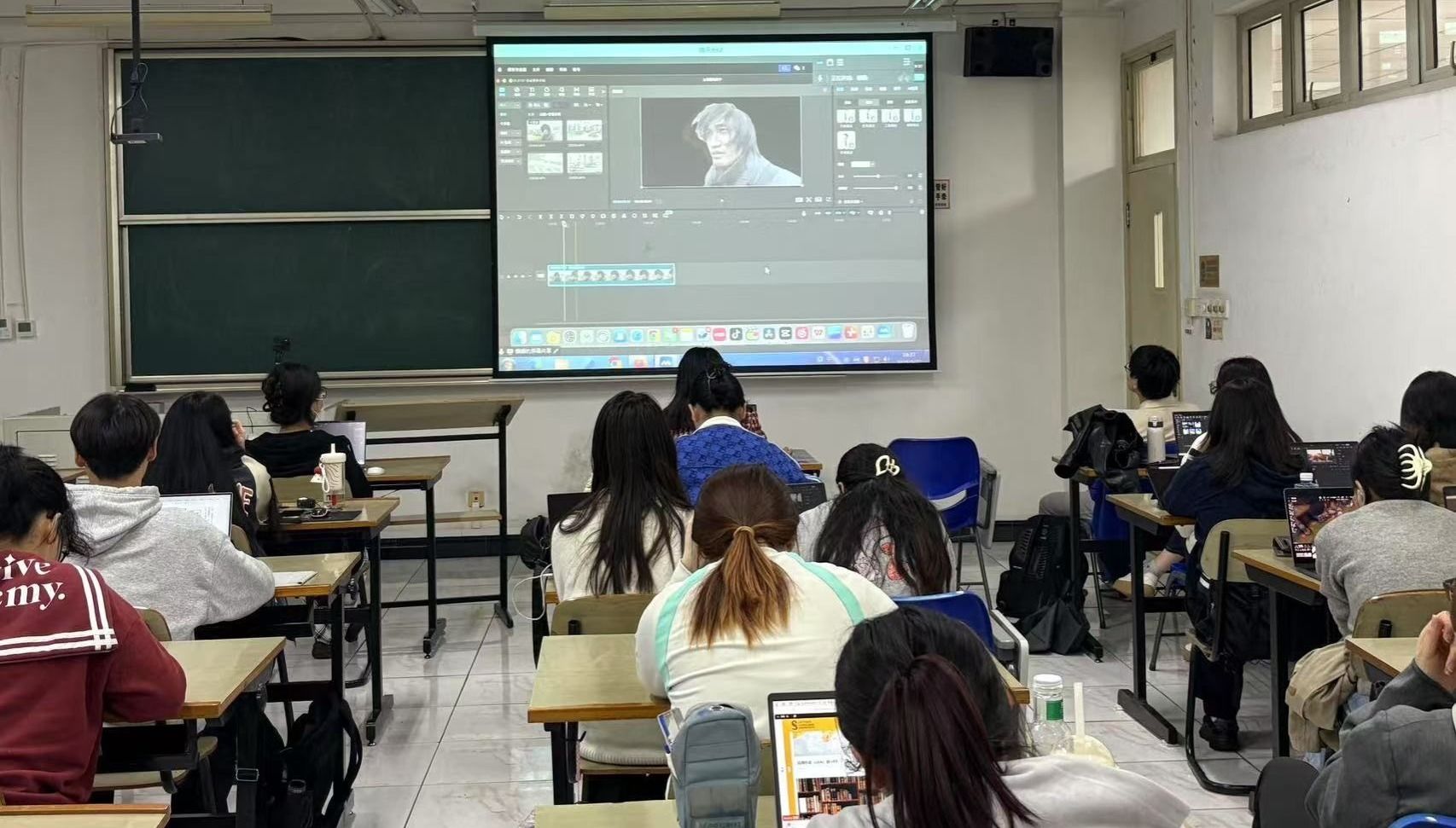 郭国老师拥有6年新媒体运营经验,其代表作包括抽象日语教学账号“严肃的潘老师讲日语”及留学故事记录账号“新乌龟”等。在课堂上,郭老师为学生们提供了专业的视频制作培训,内容涵盖:剪辑技术:如何运用剪映进行高效素材剪辑,利用达芬奇优化色彩调整;镜头语言分析:以李子柒的长视频为例,解析中国文化的视觉表达;跨文化传播实践:对比日本与欧美短视频平台,探讨海外受众对中国文化的接受特点。