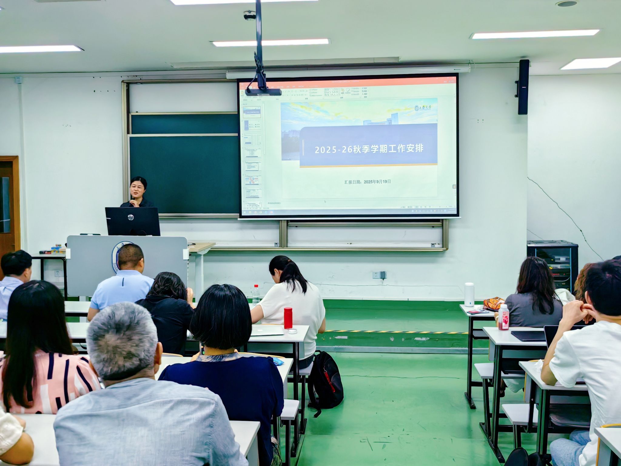 2025 年 9 月 19 日下午,澳门正规电子游戏平台 2025 年秋季学期教职工大会在经管108召开。学院党政领导班子成员与全体教职工齐聚一堂,为新学期各项工作开展锚定方向、凝聚共识。会议由学院党委书记吴蔚主持。