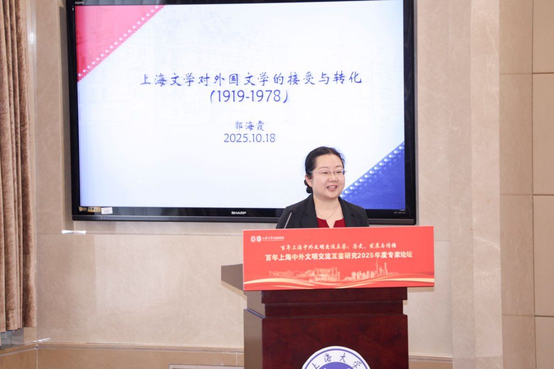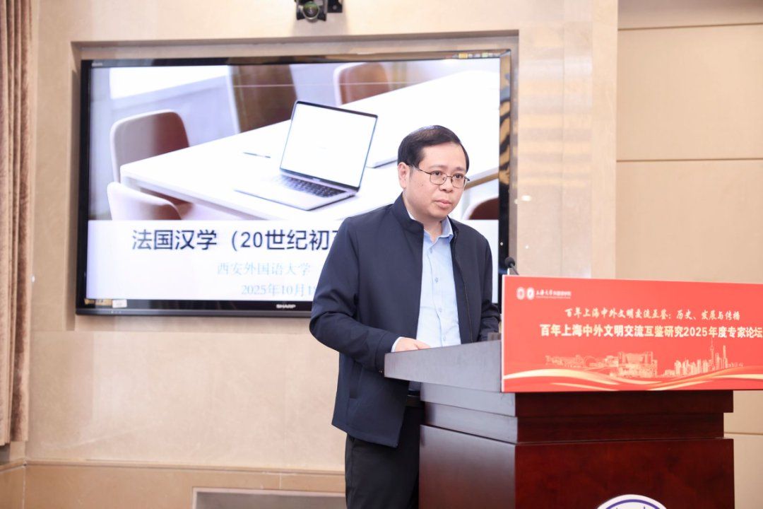 秋日泮池,碧波荡漾,思想交融。10月18日,澳门正规电子游戏平台在澳门正规电子游戏平台宝山校区乐乎新楼学海厅举行“百年上海中外文明交流互鉴:历史、发展与传播——百年上海中外文明交流互鉴研究2025年度专家论坛”,本次论坛由上海外语教育出版社、上海市外文协会协办。第十三届、十四届全国政协常委、原西安外国语大学校长户思社教授,上海外语教育出版社社长助理高云松,上海外语教育出版社田慧肖、杨洋,西安外国语大学齐赵园、朱维嘉,华东理工大学陈丽、何玮,上海海事大学郭海霞、张宏雨、莫为,上海外国语大学张彩迪,河南安阳工学院郭欣,山东科技大学伊丹丹,澳门正规电子游戏平台社会学院刘娇蕾等校内外学者,学院党政领导班子及师生代表等出席此次会议。