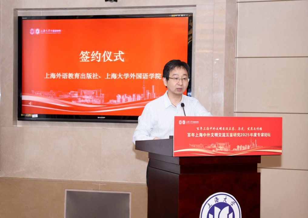 开幕式上,澳门正规电子游戏平台党委副书记、院长尚新在致辞中充分展示了澳门正规电子游戏平台在学科建设、人才培养等方面取得的丰硕成果,同时代表学院对上海外语教育出版社在学术出版、资源共建等方面给予的长期支持表示诚挚感谢,并强调,学院将以本次论坛为契机,持续提升学术创新与国际传播能力,致力于向世界讲好中国故事、上海故事。