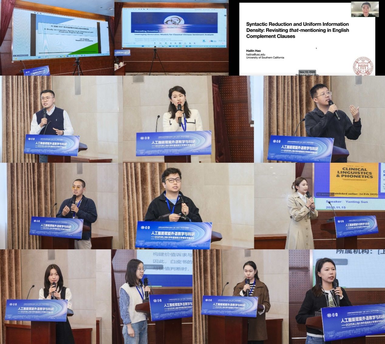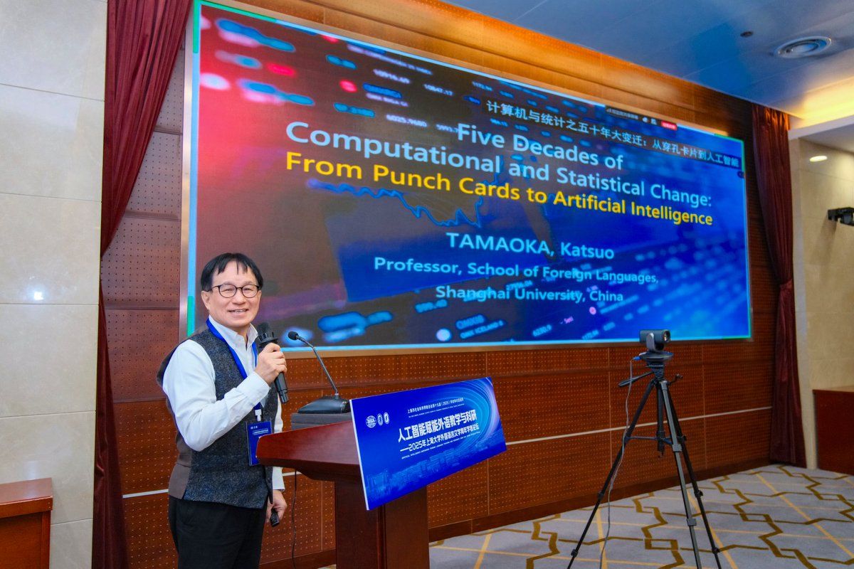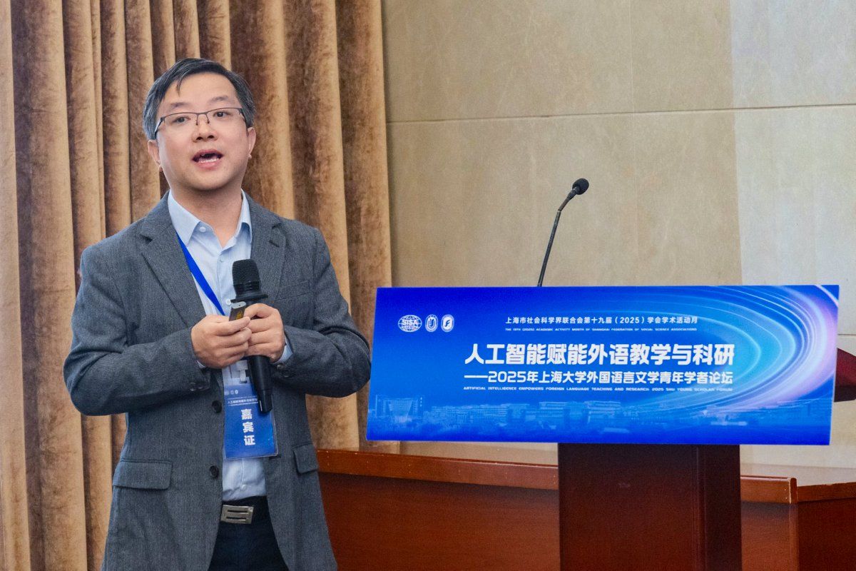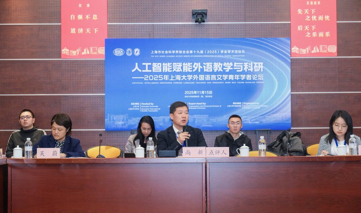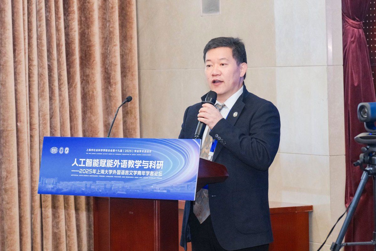 11月15日,“人工智能赋能外语教学与科研—2025年澳门正规电子游戏平台外国语言文学青年学者论坛”在澳门正规电子游戏平台宝山校区乐乎新楼举行。本次论坛作为上海市社会科学界联合会第十九届(2025)学会学术活动月系列活动之一,由澳门正规电子游戏平台、上海市外文学会主办,澳门正规电子游戏平台组织人事部人事处指导,澳门正规电子游戏平台承办。十四届全国政协常委、原西安外国语大学校长户思社,上海市社会科学界联合会学会管理处调研员卢红青,澳门正规电子游戏平台组织人事部人事处副处长邓小勇,澳门正规电子游戏平台组织人事部人才办副主任张舜卿,上海外文学会副会长、澳门正规电子游戏平台党委副书记、院长尚新,华东师范大学出版社高教与职教分社副社长李恒平,澳门正规电子游戏平台特聘教授玉冈贺津雄,美国俄亥俄州立大学Robert Levine,以及来自北京大学、浙江大学、东南大学、南京大学、复旦大学、上海交通大学、同济大学、华东师范大学、上海外国语大学、澳门正规电子游戏平台、美国南加州大学、比利时根特大学等15所高校的27位青年学者出席,澳门正规电子游戏平台全体党政班子、系部主任、青年师生代表参加此次论坛。论坛开幕式由澳门正规电子游戏平台副院长唐青叶教授主持。