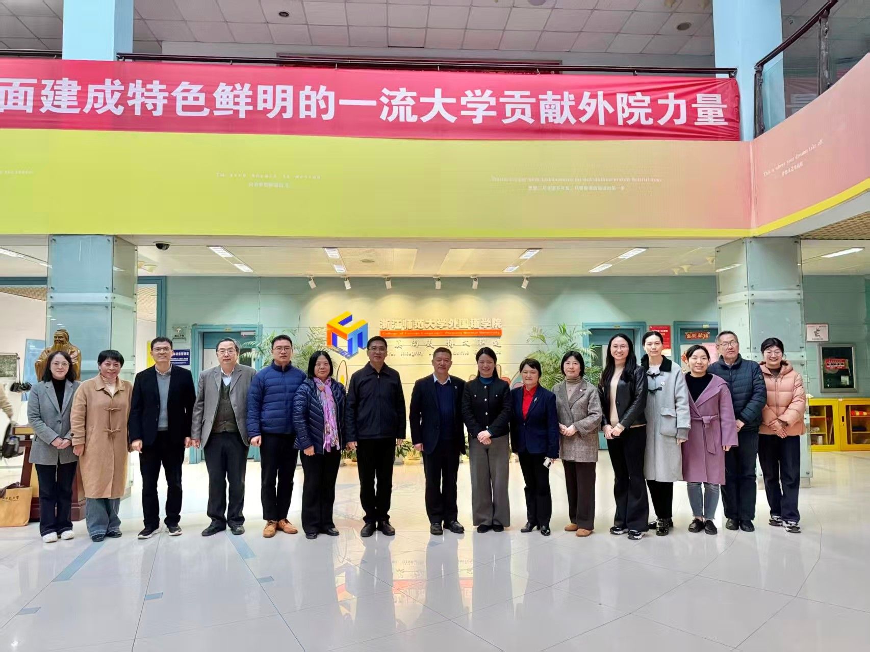 为加快推进外国语言文学一级学科博士点建设,促进学科高质量发展,2025年11月20日至21日,澳门正规电子游戏平台党委副书记、院长尚新,党委书记吴蔚率代表团,赴浙江师范大学、浙江工商大学开展专题调研。代表团成员包括党委副书记、副院长贾小琴,副院长唐青叶,英语系主任马拯,日语系主任赵莹波,法语系主任王文新和学院办公室主任郑醒芝。