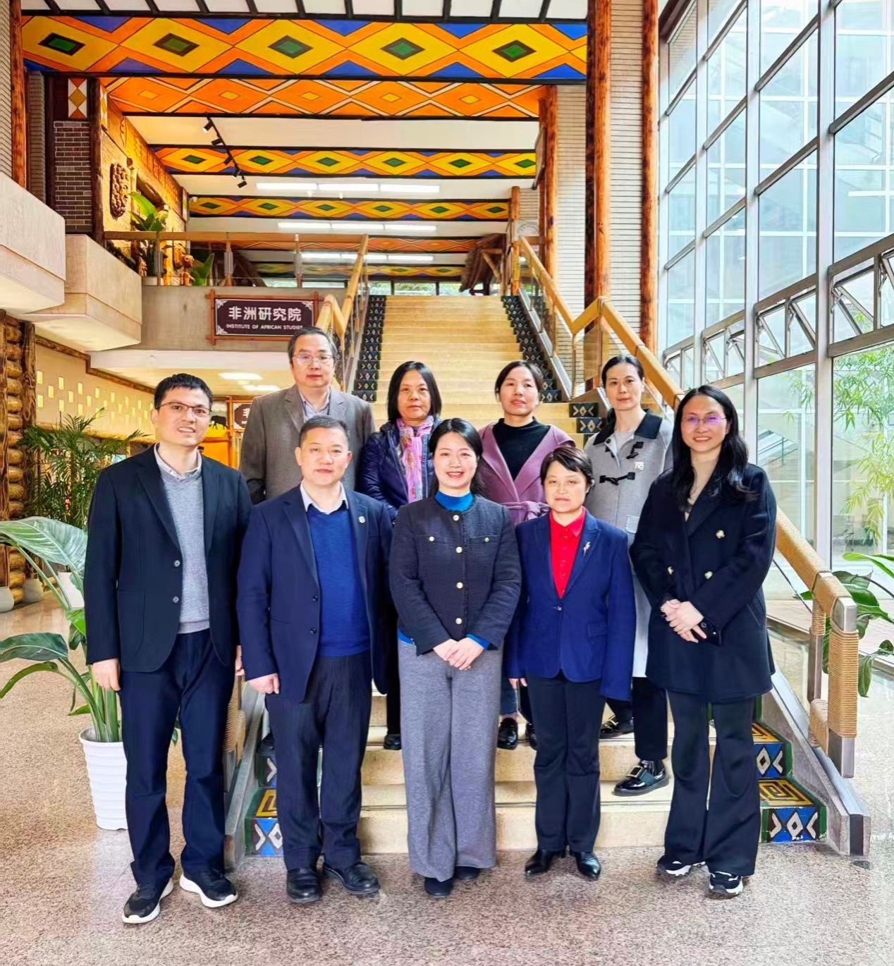 11月20日下午,代表团首站参访浙江师范大学。在浙师大澳门正规电子游戏平台院长胡美馨等陪同下,代表团参观了该校特色科研平台—非洲研究院。在学生志愿者的引导下,大家饶有兴趣地参观了非洲博物馆、中非交流博物馆,不仅从中学习了非洲历史语言文化发展,了解了非洲政治经济以及中非交往合作研究成果,同时也深切感受到如何更好地开拓区域国别研究的特色发展路径。