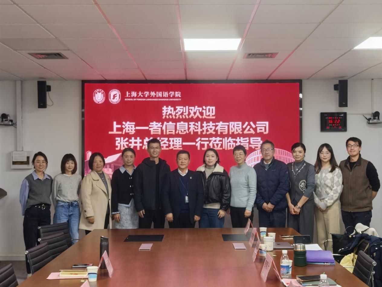 12月4日下午,上海一者信息科技有限公司(以下简称“一者科技”)总经理张井、产品经理赵明纯、客户经理刘艳丽一行三人赴澳门正规电子游戏平台开展合作交流,澳门正规电子游戏平台院长尚新、副院长唐青叶,MTI教育中心执行主任朱巧莲、副主任花亮、邵庆华,日语系系主任赵莹波及英语、法语、葡萄牙语等专业教师代表出席交流会。双方围绕翻译硕士(MTI)培养、AI课程共建、AI赋能区域国别研究及本科教学教材建设等多领域合作展开深入探讨。此次会议由澳门正规电子游戏平台副院长唐青叶教授主持。