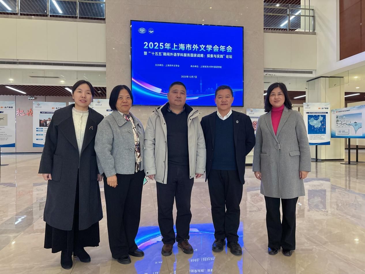 2025年12月7日,由上海市外文学会主办、上海海洋大学澳门正规电子游戏平台承办的“2025年上海市外文学会年会暨‘十五五’期间外语学科服务国家战略:探索与实践”论坛在上海海洋大学隆重举行。上海市外文学会会长、上海外国语大学原副校长查明建教授,上海海洋大学党委副书记、副校长夏雅敏,上海市社联学会管理处调研员卢红青,上海市外文学会荣誉会长、上海对外经贸大学原副校长叶兴国教授等领导嘉宾出席论坛。上海市外文学会副会长、澳门正规电子游戏平台党委副书记、院长尚新教授,率副院长唐青叶、副院长戴朝晖、副院长张建琴以及英语系主任马拯一同参会,与来自复旦大学、上海交通大学、同济大学、华东师范大学、上海外国语大学等三十余所高校的百余名专家学者共同探讨新时期外语学科发展路径。