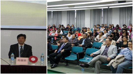 在讲座中,陆教授首先建议大家在日常生活中多多饮茶,不仅可以健身而且能够修心养性。进而达到"和敬清寂"﹑"修身得道"的茶道境界。随后从日本茶道的起源,发展,茶道中的精神世界谈起,以生动形象的图片向大家展示中日饮茶文化的差异—"中国茶艺讲'身心'(技艺)" "日本茶道讲'心身'(修炼)"。最后指出日本"茶道"值得中国"茶艺"取经的地方,同时提出中国茶艺将来发展的方向。陆教授学识渊博,结合当前社会形势,引经据典以及幽默的演讲风格让报告厅里不断响起喝彩声。