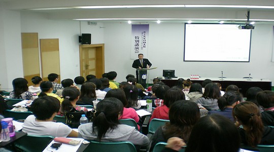 日本龟甲万公司此次派出专家来到日语系,介绍了龟甲万公司如何看待和处理食品安全问题。近年来中国和国际社会都对食品安全问题非常重视。这次讲座因时制宜,向日语系的学生介绍了日本企业在面对食品安全时的态度。演讲结束之后,日语系的同学还针对大家感兴趣的话题进行了提问,现场讨论的气氛非常热烈。日方也对日语系学生的热情和踊跃发言表示了感谢。