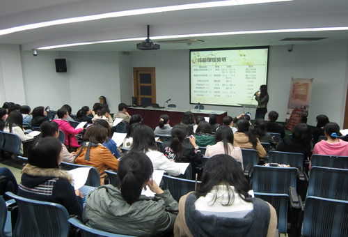 启动说明会上,导生代表、2010级英语系学生顾彦修对英美文化讲坛、精品课程旁听与专业社团体验三个部分的内容做了详细介绍。其中,英美文化讲坛涵盖了诗歌、语言与社会、女性小说、口译等丰富的主题,而精品课程旁听则选择了英美文学史、英美妇女文学、接待与洽谈口译、英语辩论等在学生中口碑极佳的几门课程,旨在向学员们展示英语学科在语言之外所着重培养的思维方式与国际视野。此外,英语演讲与辩论社和Toast Master Club的社团体验也是学员们非常感兴趣的项目。恰逢澳门正规电子游戏平台第五届"卡西欧"杯英语辩论赛即将开赛,有机会参加前期的系统培训让不少大一学生跃跃欲试。一位学员在会后说:"我对这些讲座与课程都很感兴趣,就怕会有时间冲突,也怕自己能力不足,不过我会勇敢尝试的。"