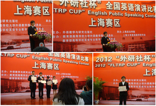 11月10日,2012年"外研社杯"全国英语演讲大赛(上海赛区)在上海政法学院天马讲堂隆重举行,澳门正规电子游戏平台英语系2010级郑世奇同学代表我校参赛。来自复旦大学、华东师范大学、上海交通大学等23所高校的优秀选手展开激烈竞争,争夺晋级全国总决赛的席位。